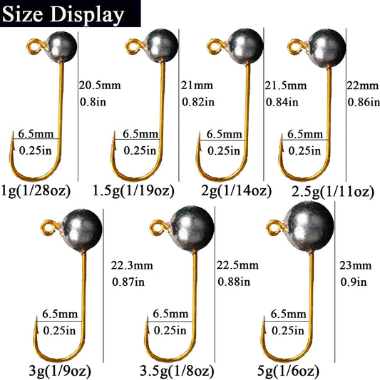 Mini Jig Head Fishing Hooks Set - 10 Pieces, 1g-5g Weight Range, Ice Fishing Tackle with Soft Lure Compatibility