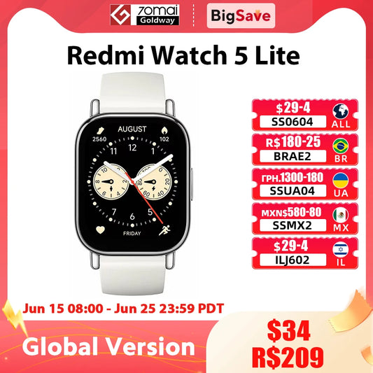 Xiaomi Redmi Watch 5 Lite Global Version - 1.96" AMOLED Display - 18-Day Battery Life - Bluetooth Calling - Built-in GNSS - 5ATM Water Resistant
