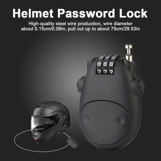 Motorcycle Helmet Lock - Steel Cable Code Lock with Telescopic Wire Rope for Suitcase, Car & Sled