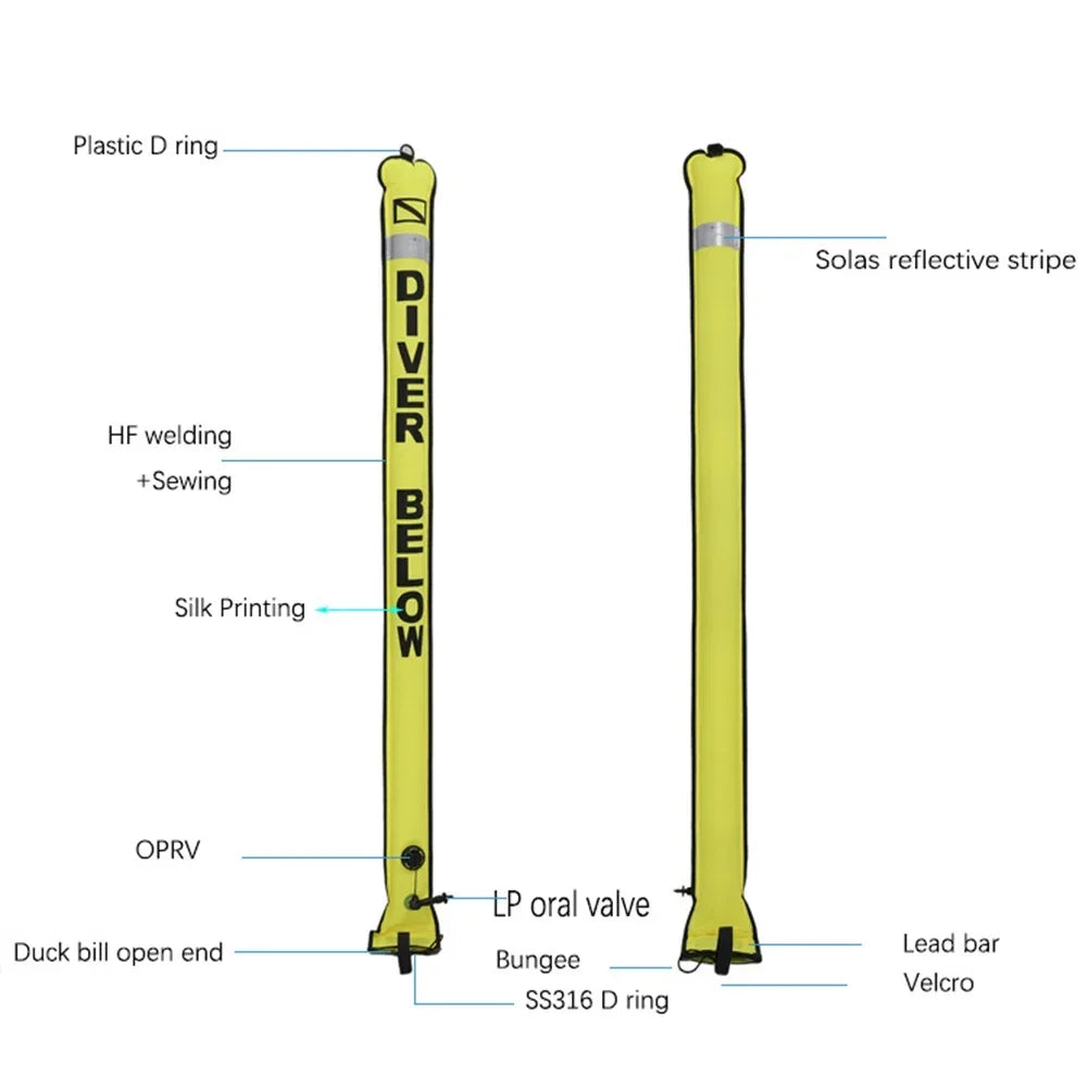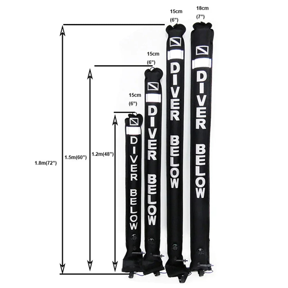 Professional Scuba Diving Safety Signal Tube - High Quality Inflatable Surface Marker Buoy (SMB) - 1.2M/1.5M/1.8M Diver Below Safety Sausage