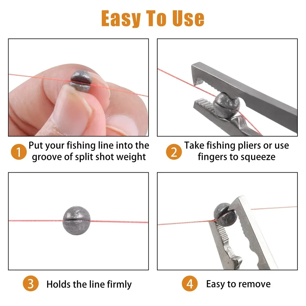 - Round split shot design - Easy to attach and remove without damaging your line