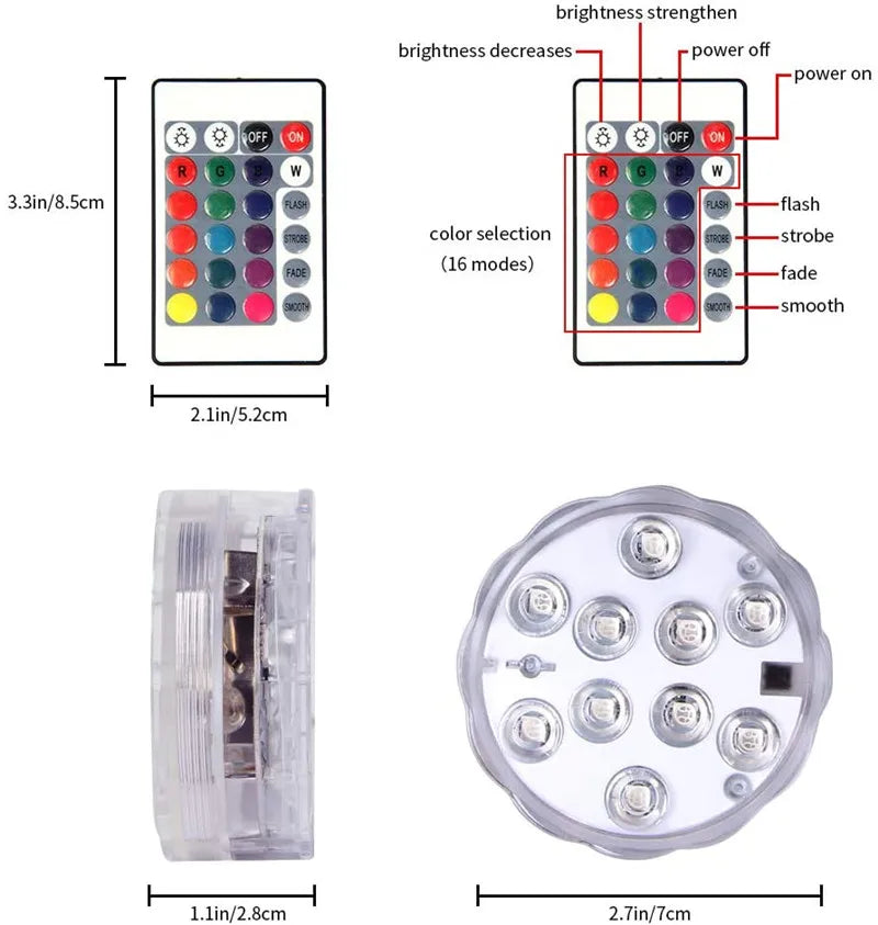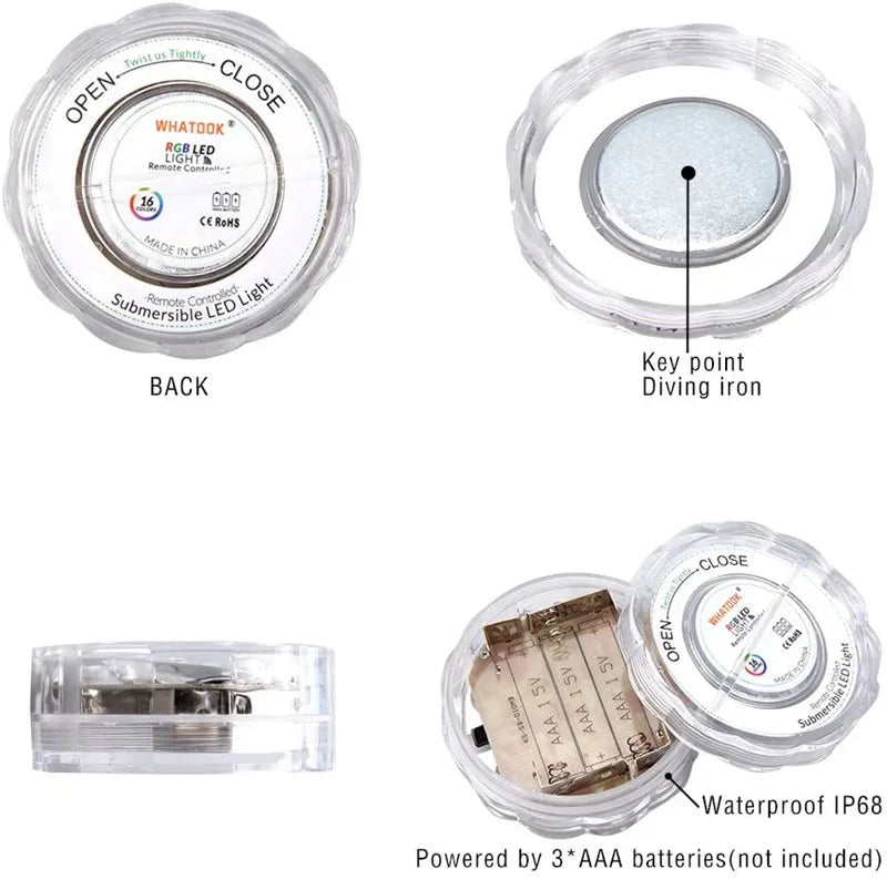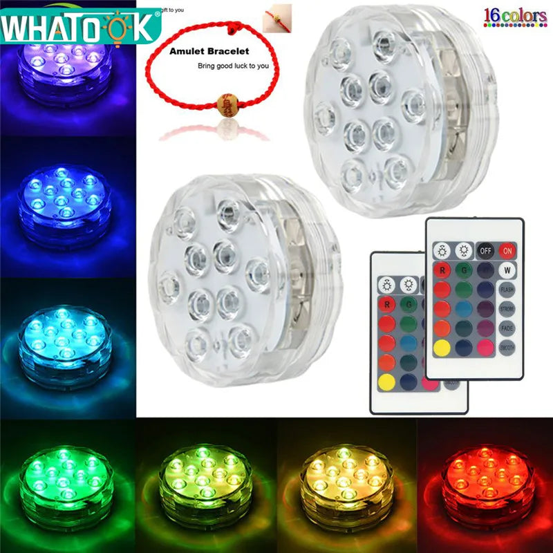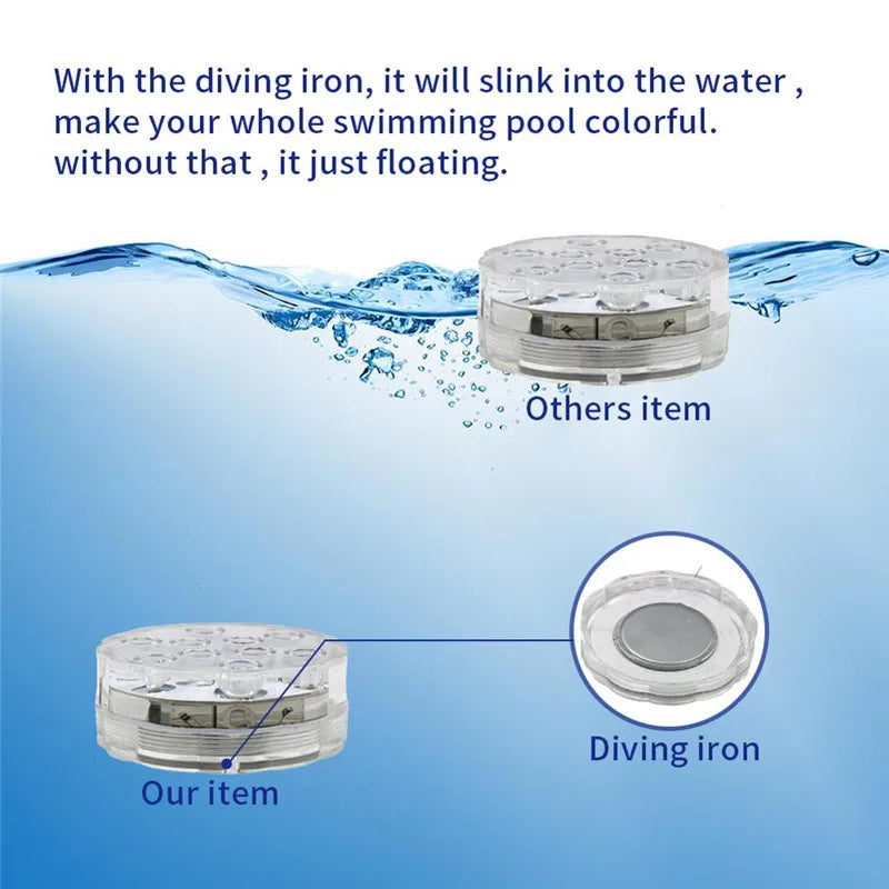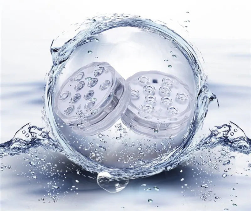 RGB LED Underwater Light - 10 LED Battery Powered Submersible Night Lamp for Swimming Pools, Gardens, Weddings & Party Decorations