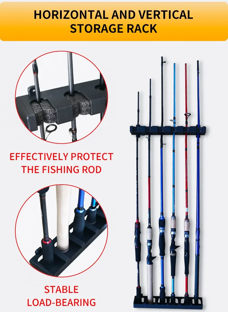 6-Hole Wall-Mounted Fishing Rod Holder - Vertical & Horizontal Display Rack