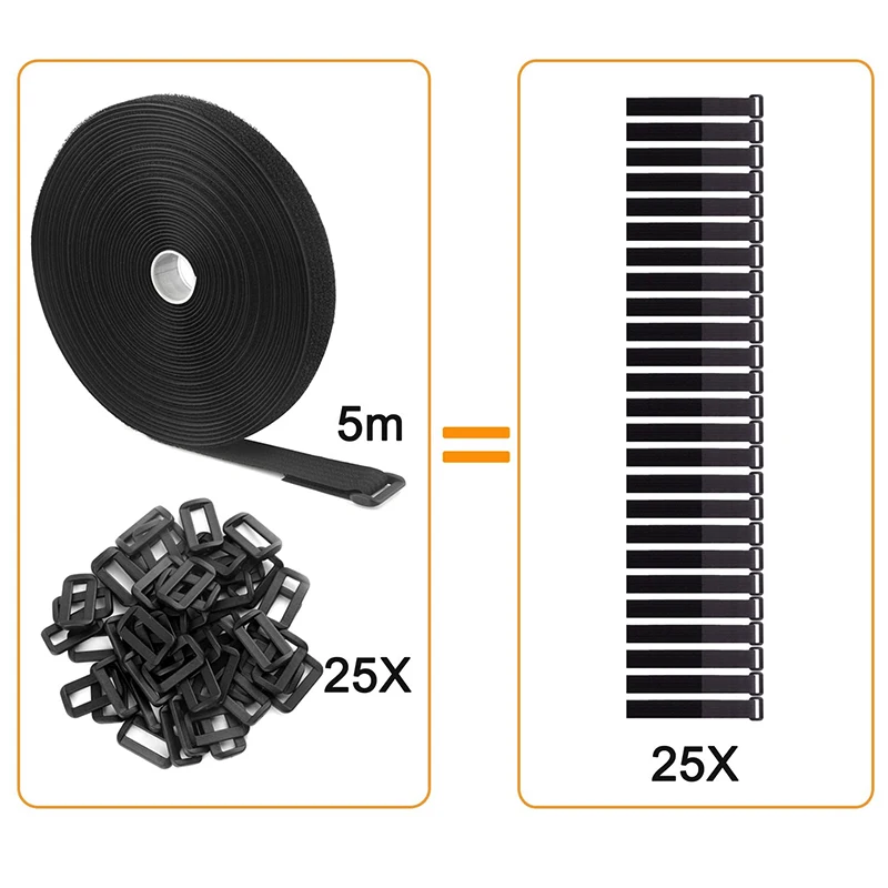 - Includes plastic buckles: 10 buckles with 2m purchase, 25 buckles with 5m purchase