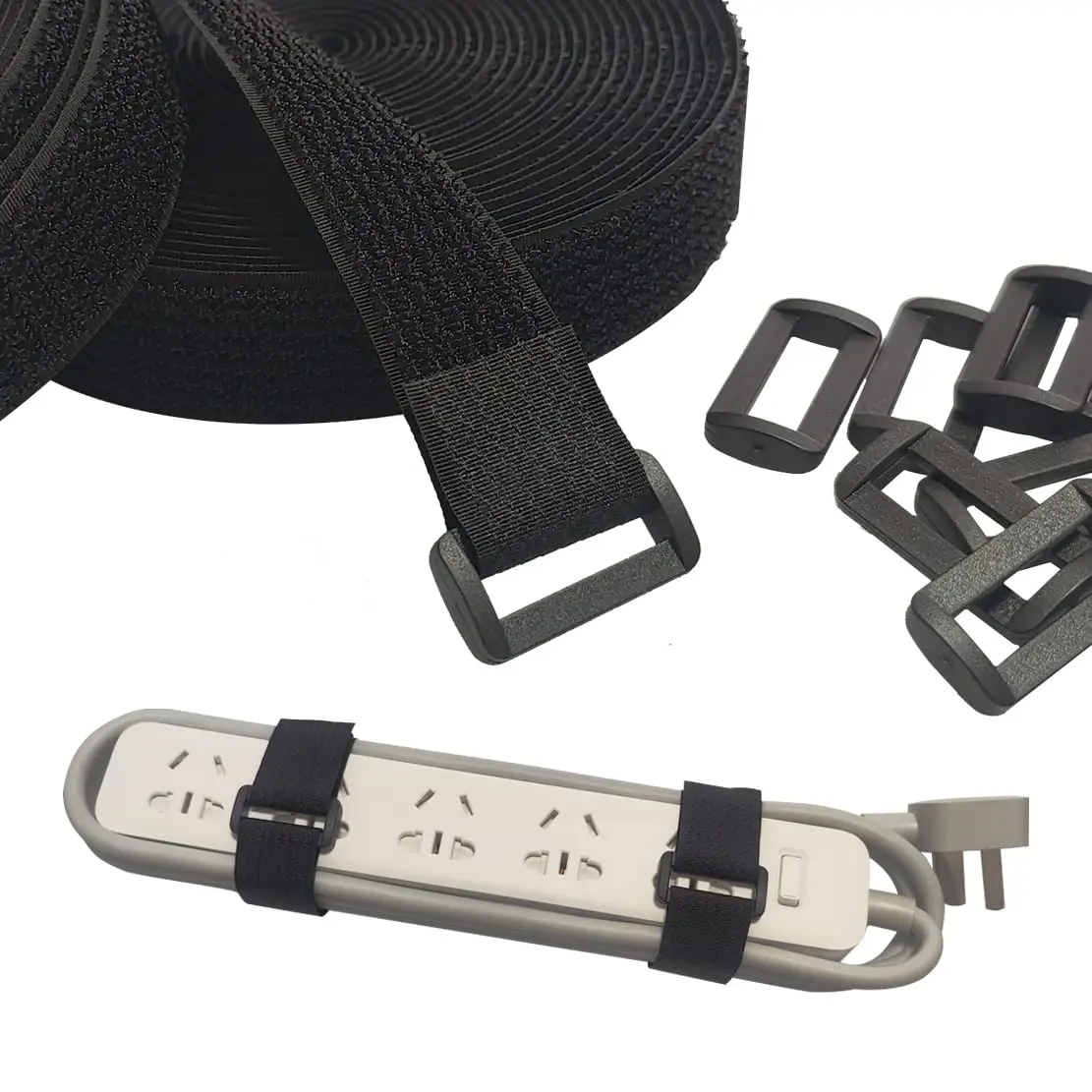 2M Cut-to-Length Reusable Nylon Cable Organizer Strap - Self-Adhesive Hook and Loop Fastening Tape with Buckle for Storage and Securing