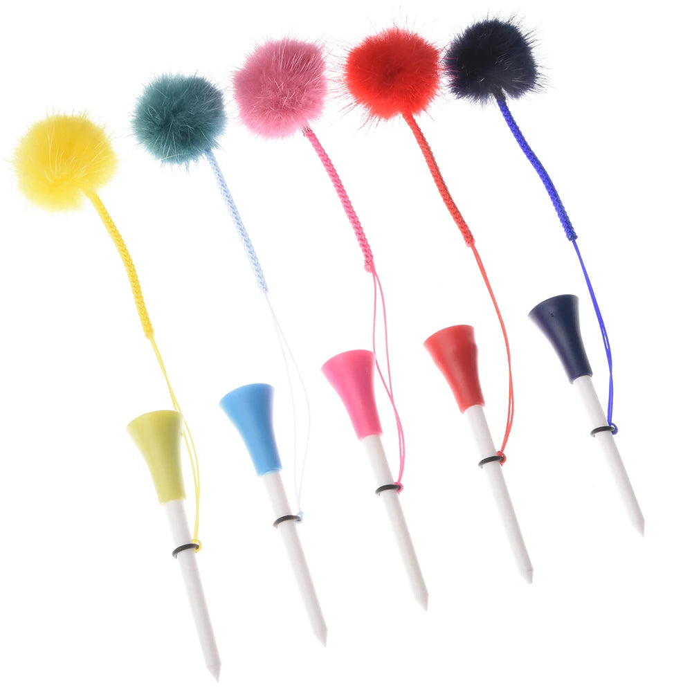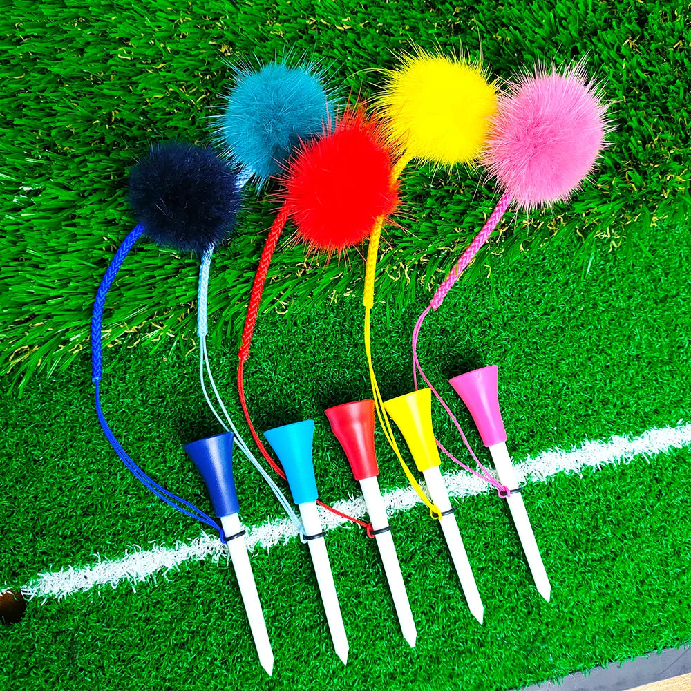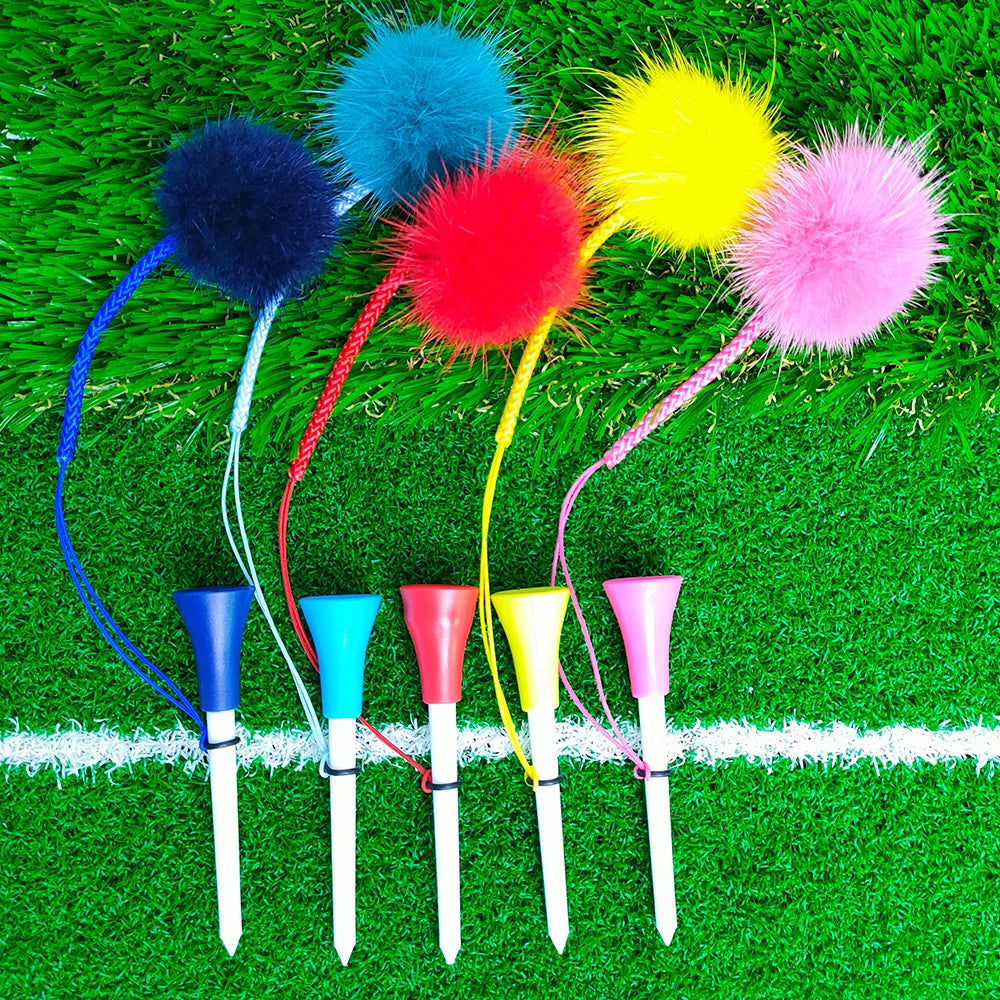 Premium Golf Tee Set - 5 Colorful Rubber Tees with Anti-Loss Fur Ball Markers