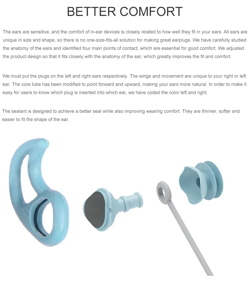 Universal-Fit Waterproof Ear Plugs with Sound Transmission - Swimming Surfing Diving Water Sports Accessories with Lanyard