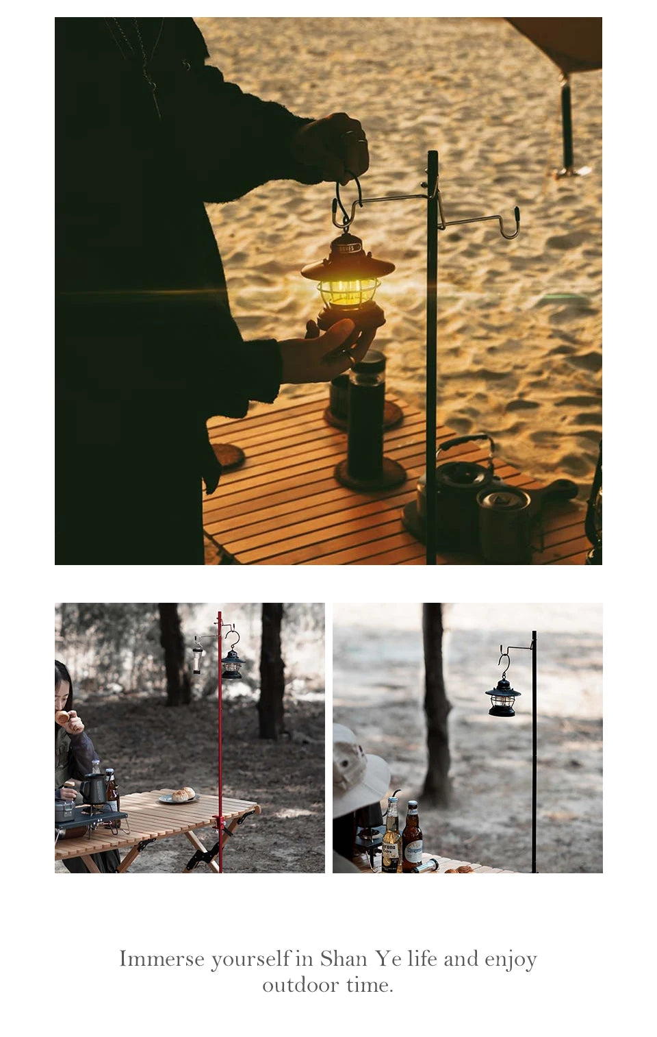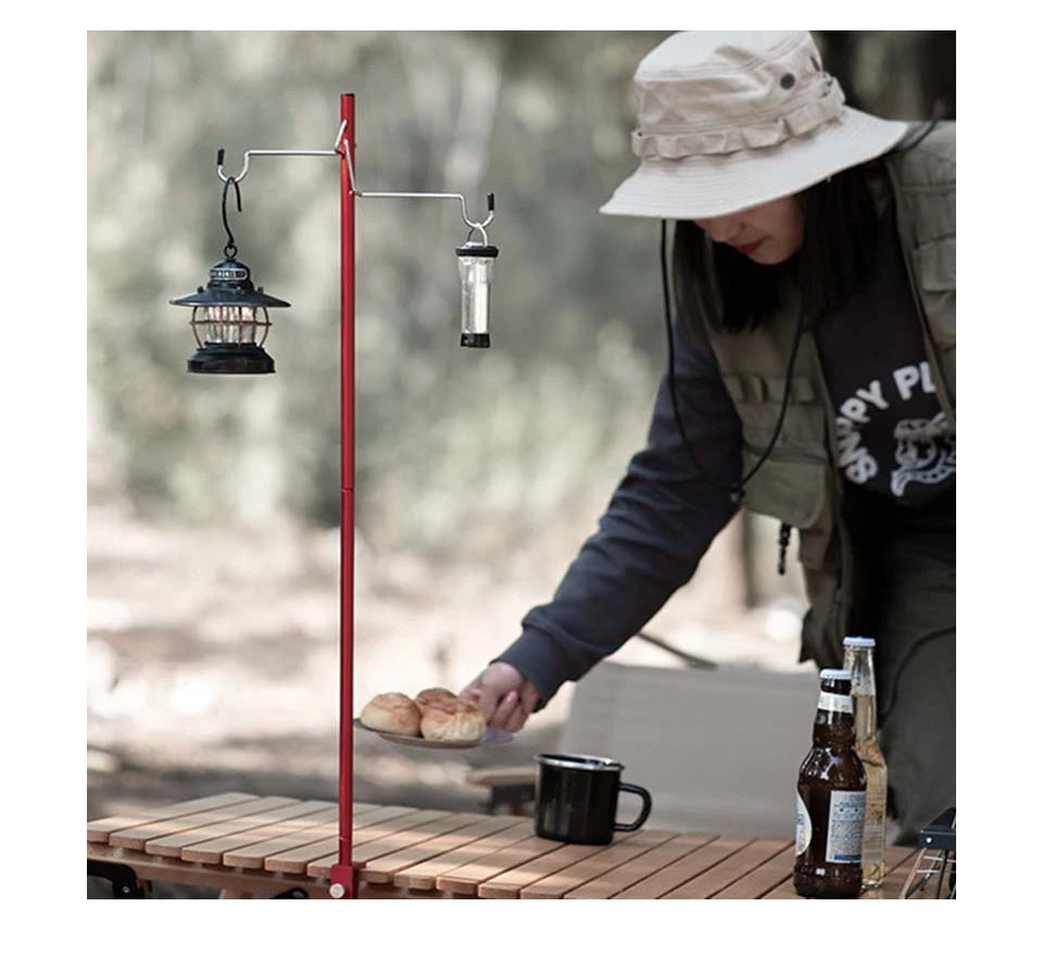 Portable Camping Lantern Stand - Detachable Tabletop Light Holder with Hangers for Hiking & Tourist Equipment