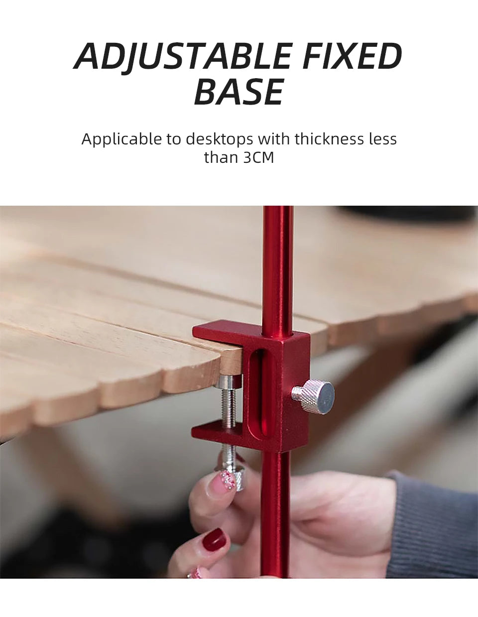 - Universal Tabletop Clamp: Adjustable fixed base fits any desktop or table surface up to 3cm thick - perfect for camp tables, RV surfaces, or outdoor furniture