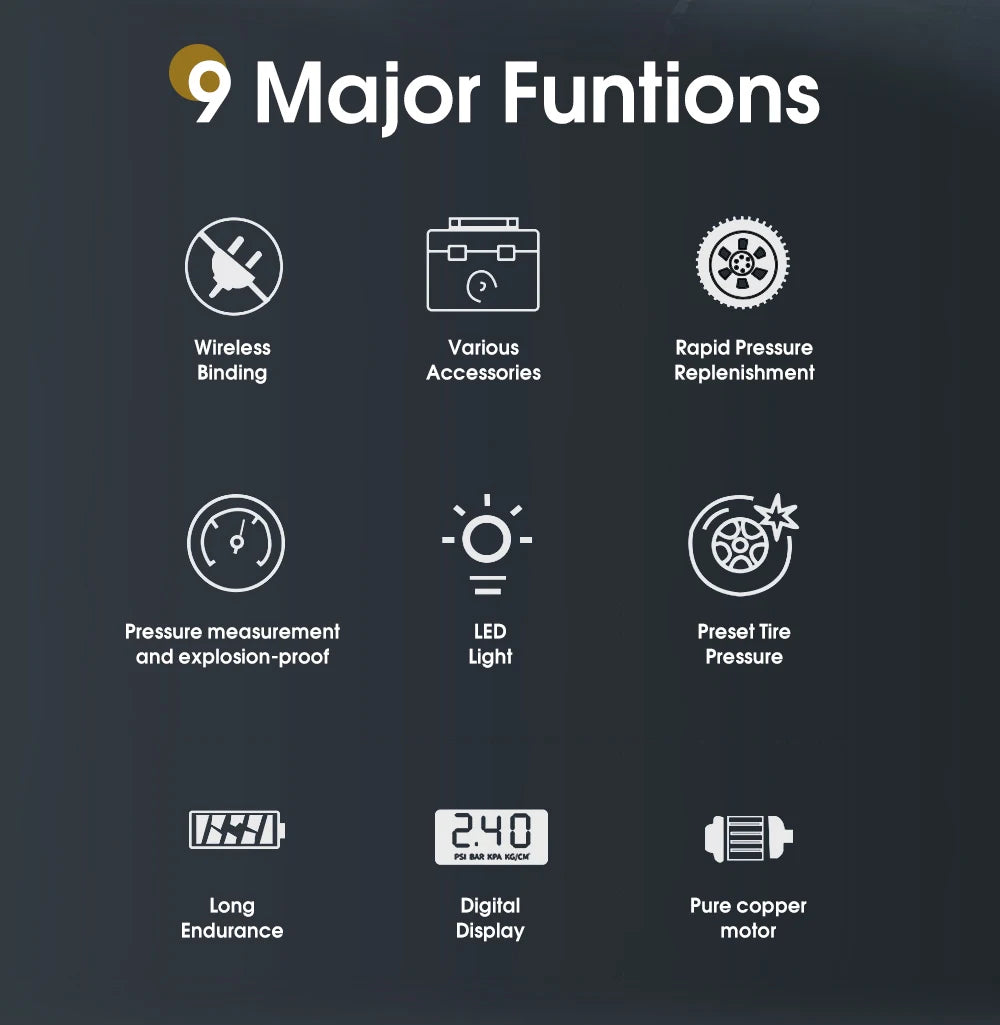 - Multi-Purpose Design: Includes adapters for car tires, motorcycle tires, bicycle tires, and sports balls