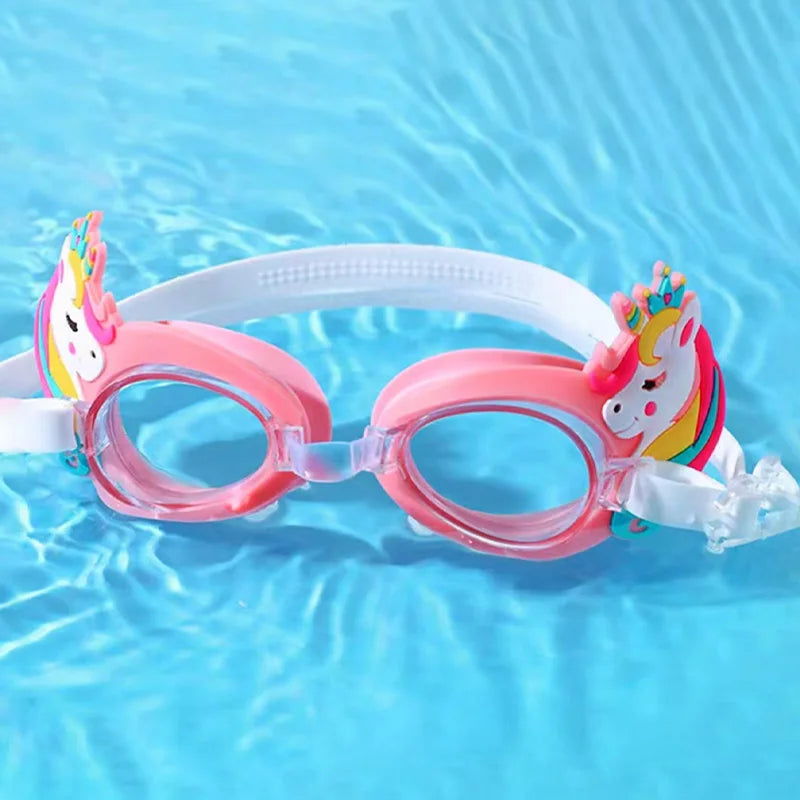 Kids Waterproof Swimming Goggles - Colorful Cartoon Pony Design with Anti-Fog & Adjustable Strap