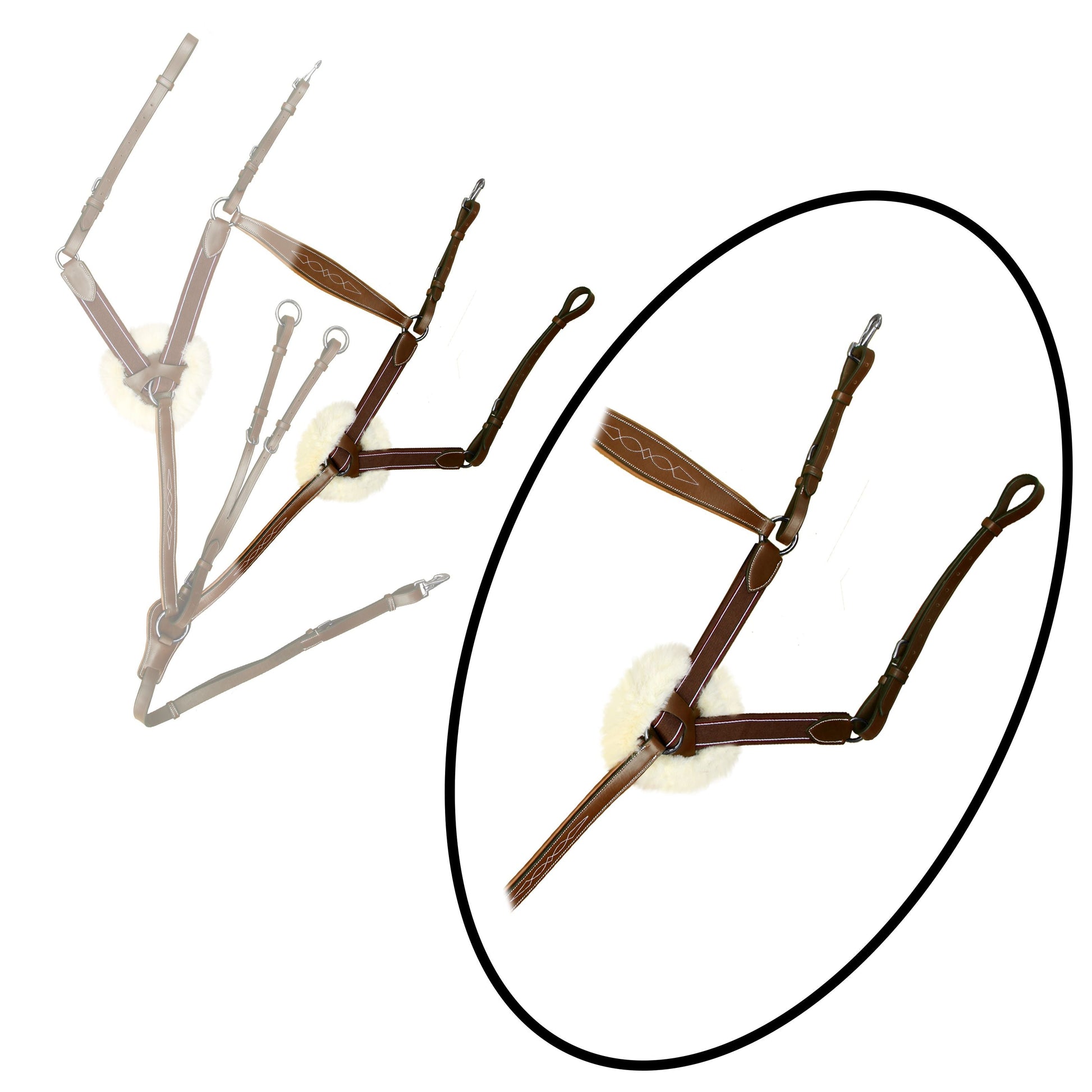 Exion Five Point Breastplate with Running Attachment and Sheepskin Fur Padding - Matching Color Elastic