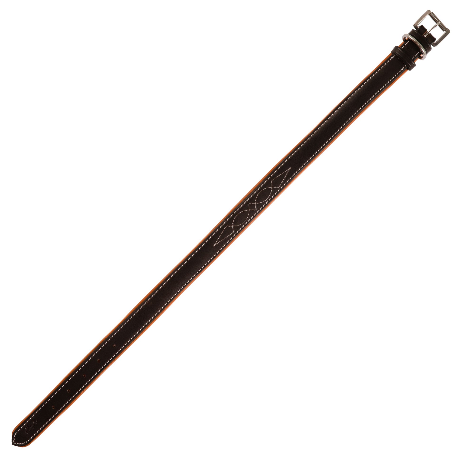 ExionPro Fancy Stitched Padded Leather Dog Collar - Conker Padding
