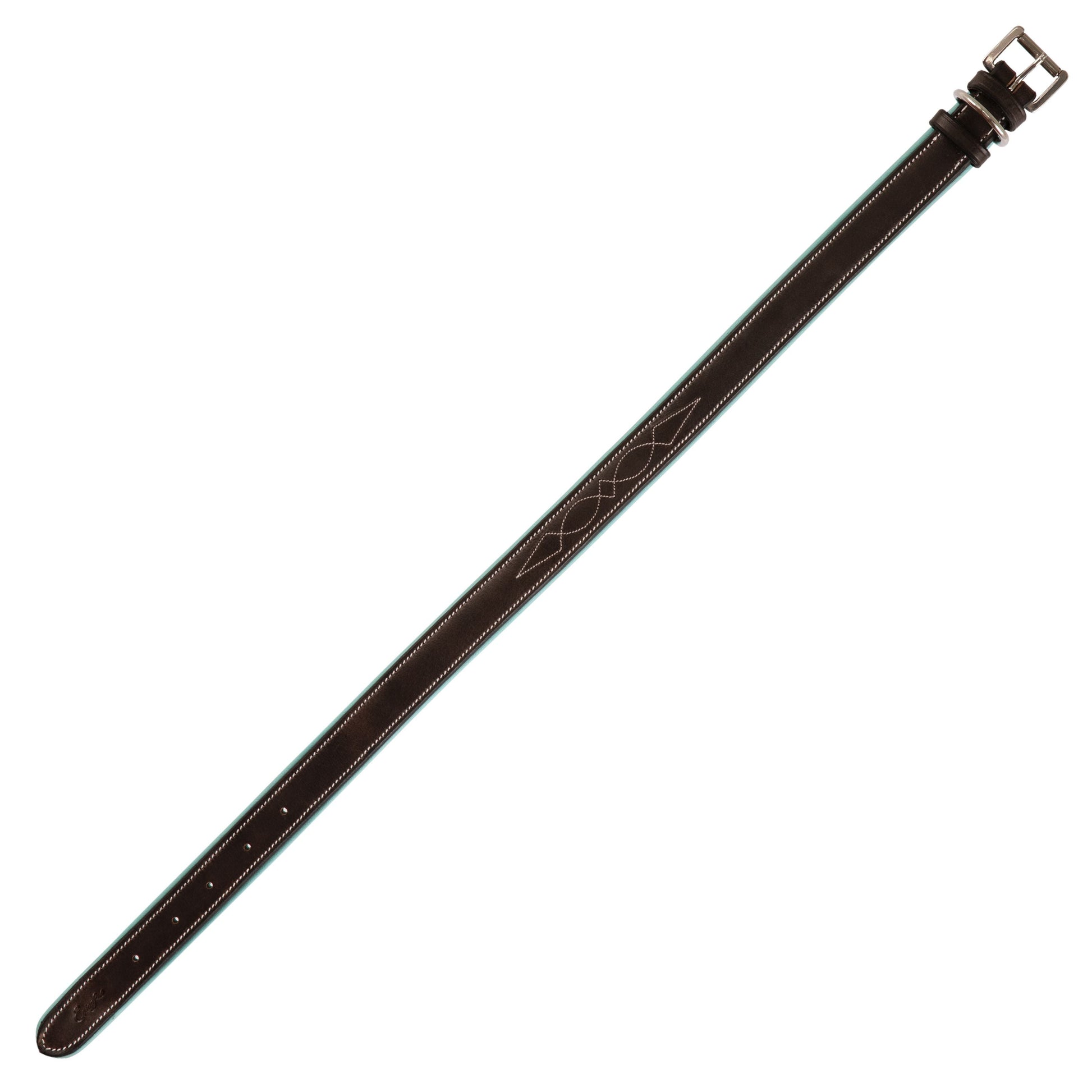 ExionPro Fancy Stitched Padded Leather Dog Collar - Sky Blue Padding