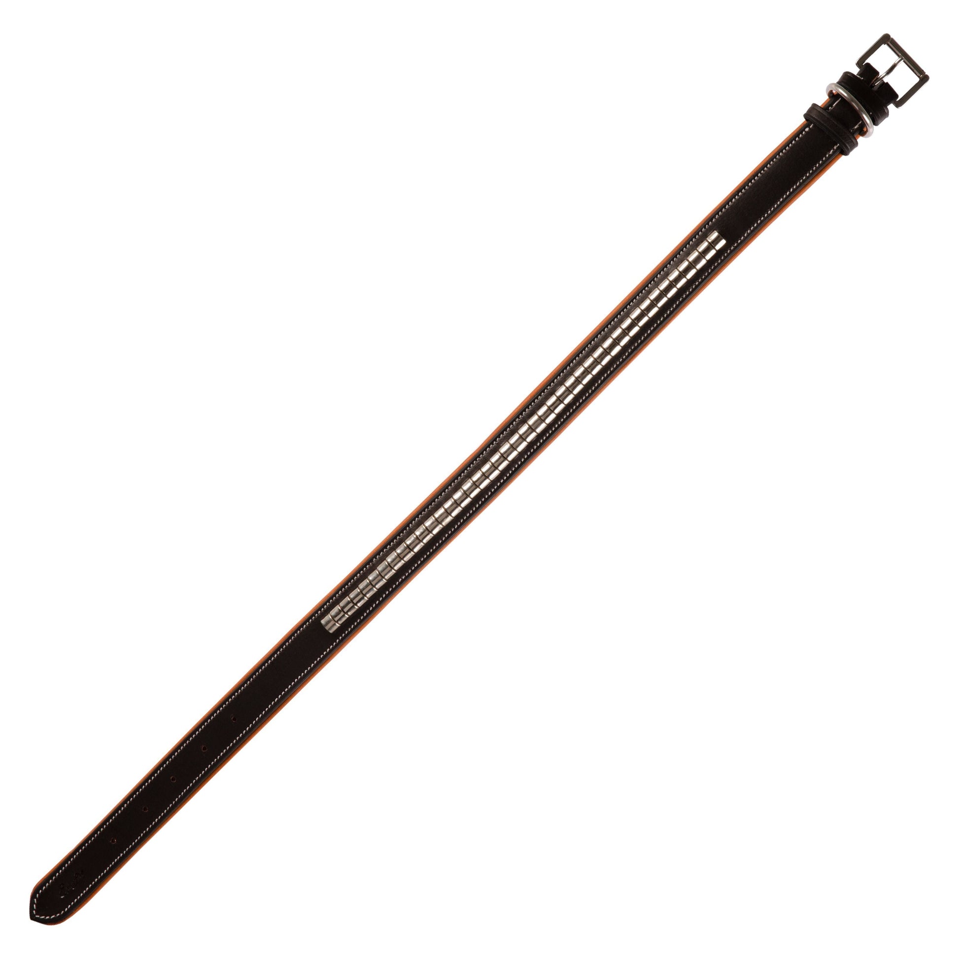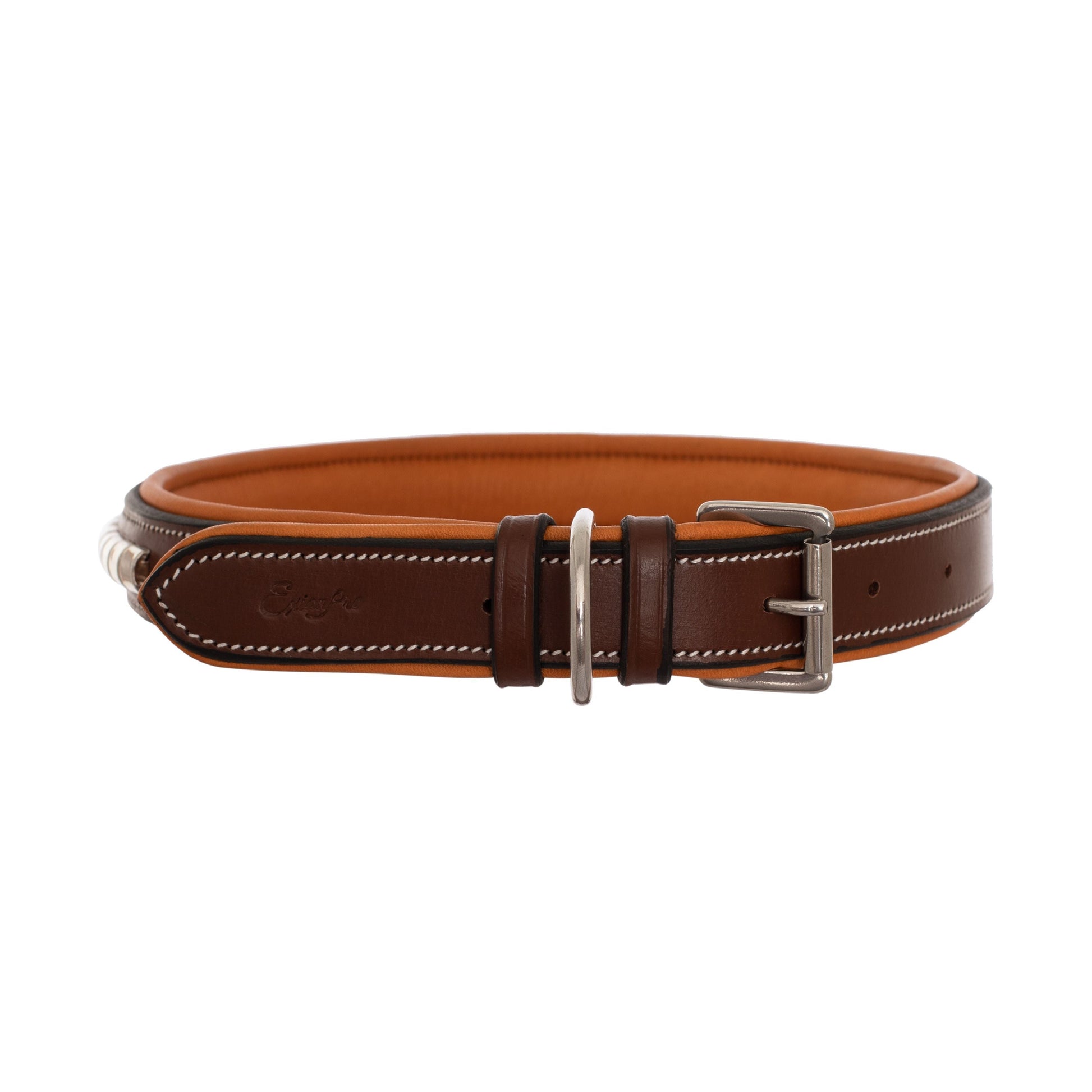 ExionPro Silver Clincher Padded Leather Dog Collar - Conker Padding