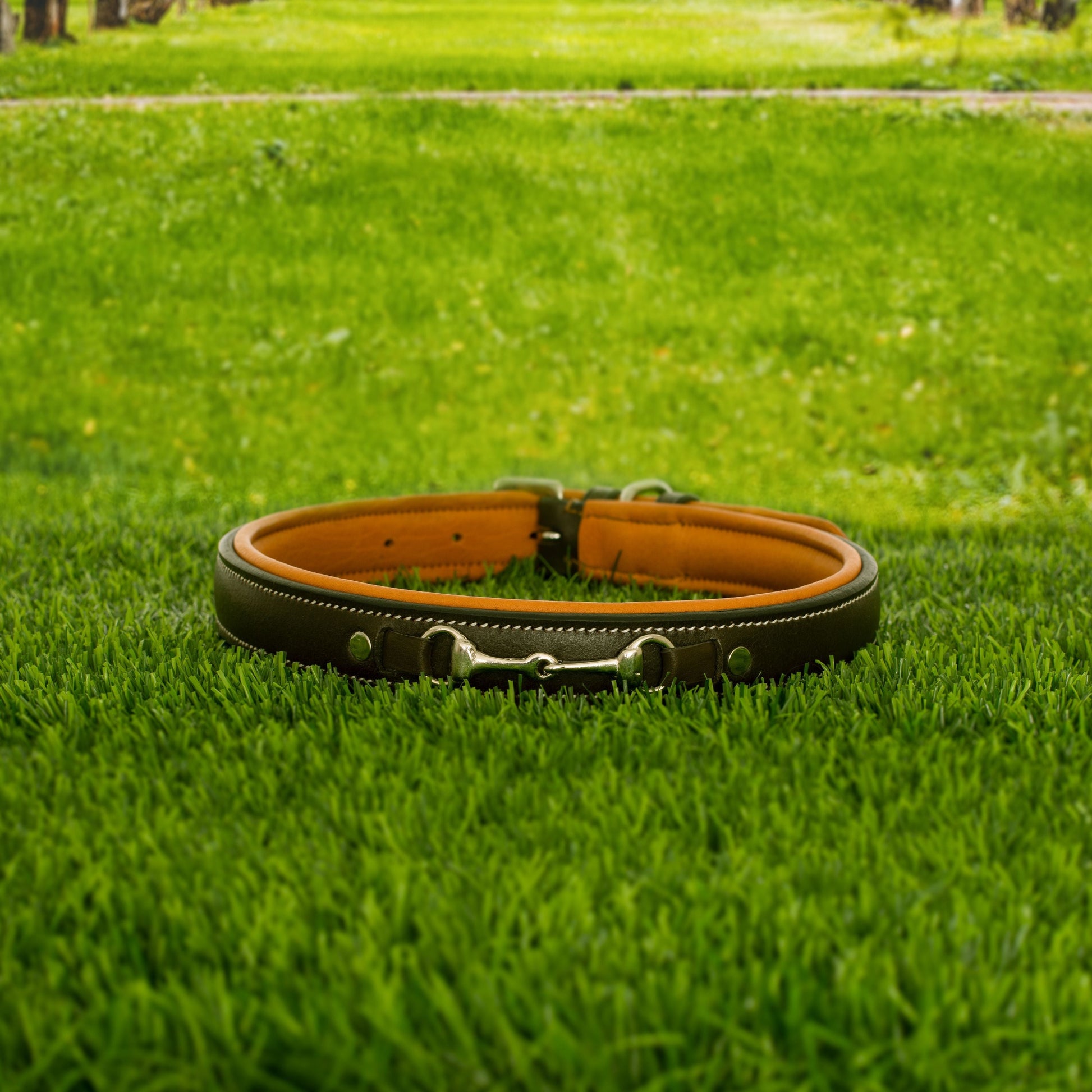 Exion Silver Snaffle Padded Leather Dog Collar - Conker Padding