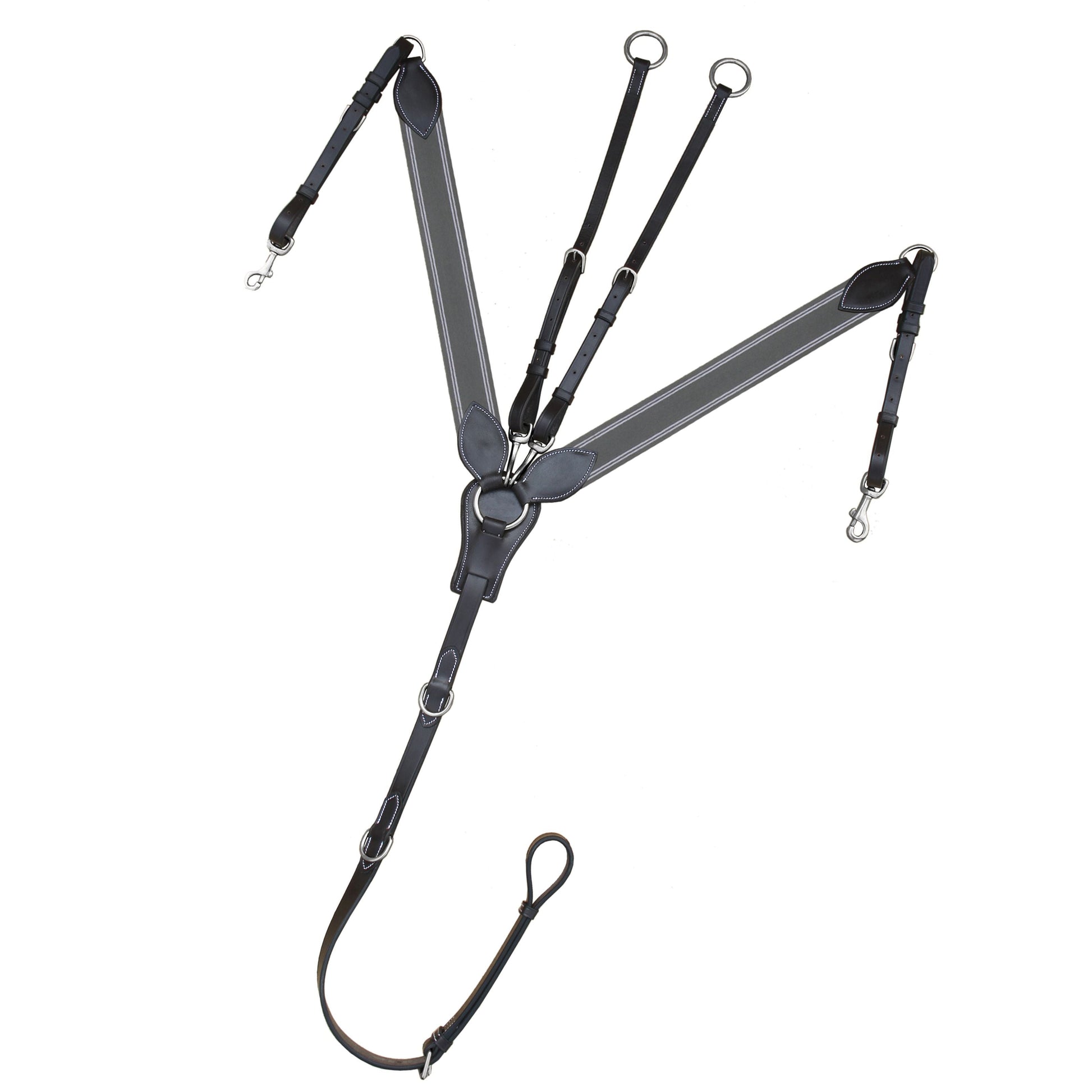 The running attachment on the breastplate is adjustable with a number of holes on it and on the breast strap. Snaps are provided on both ends to attach to the saddle.
