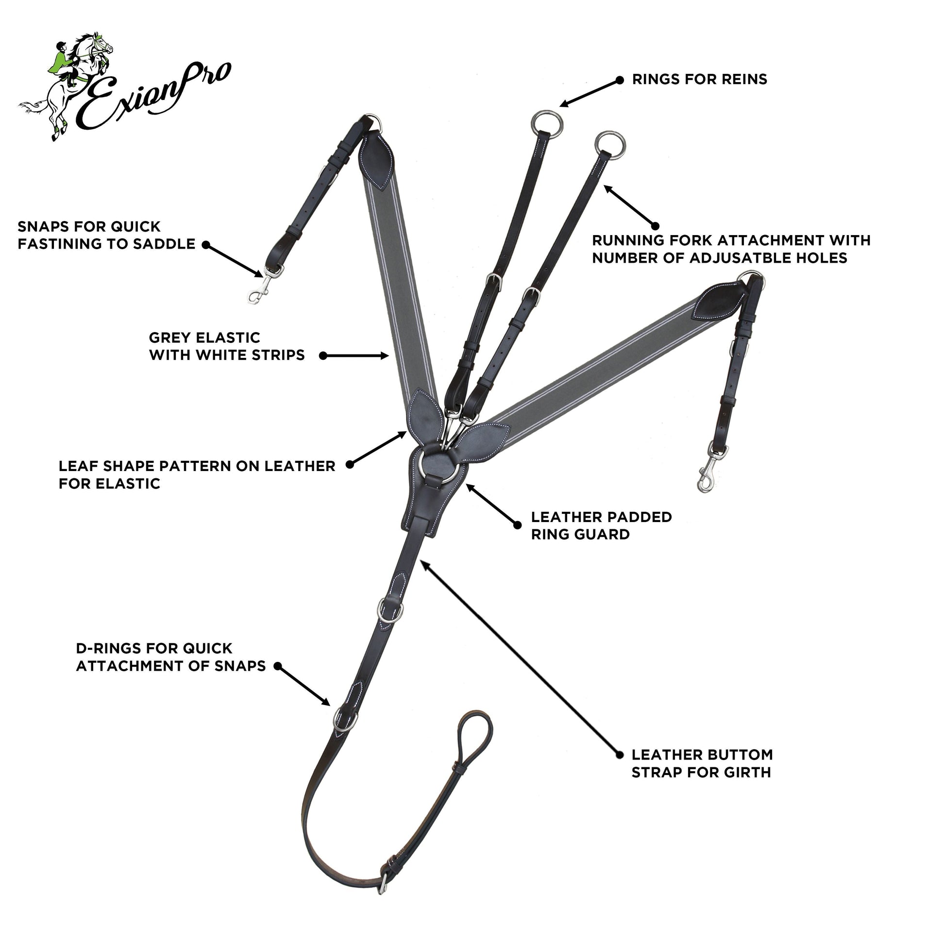 ExionPro Wide Elastic 3 Point Breastplate - Grey Elastic & White Lines