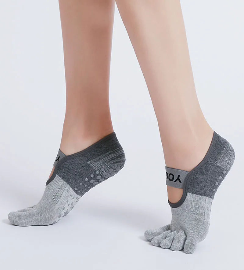 Five Fingers Yoga Socks Silicone Non-Slip Five Finger Socks for Women Backless Fitness Ballet Dance Cotton Gym Sock Professional