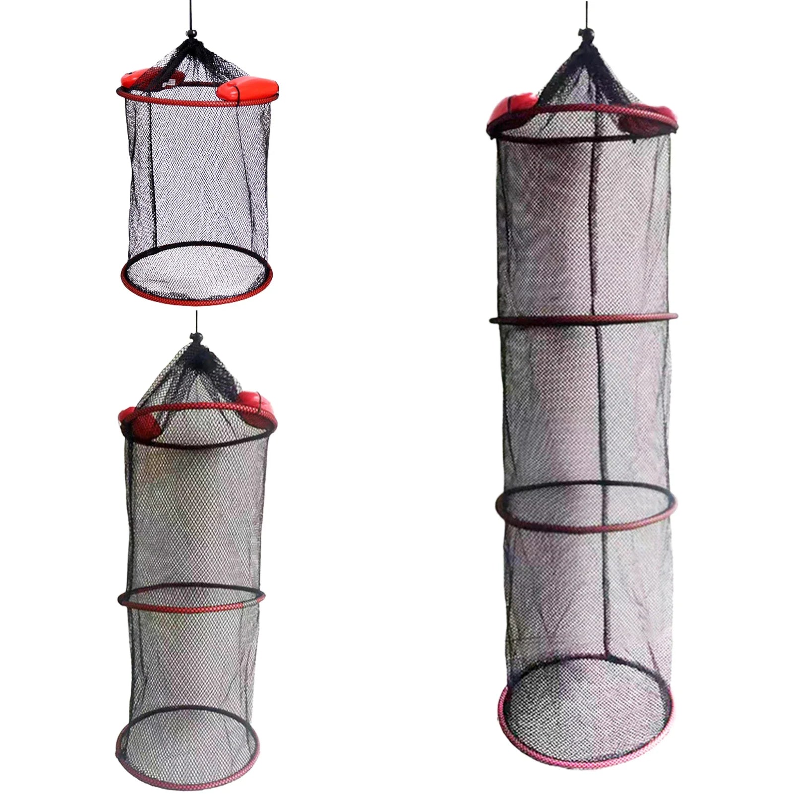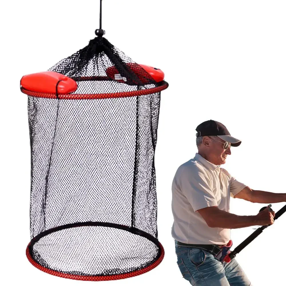 Portable Floating Fishing Net - Thickened Woven Mesh Landing Basket with Anti-Jump Design for Fish, Shrimp & Lobster Storage