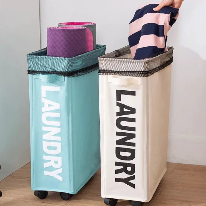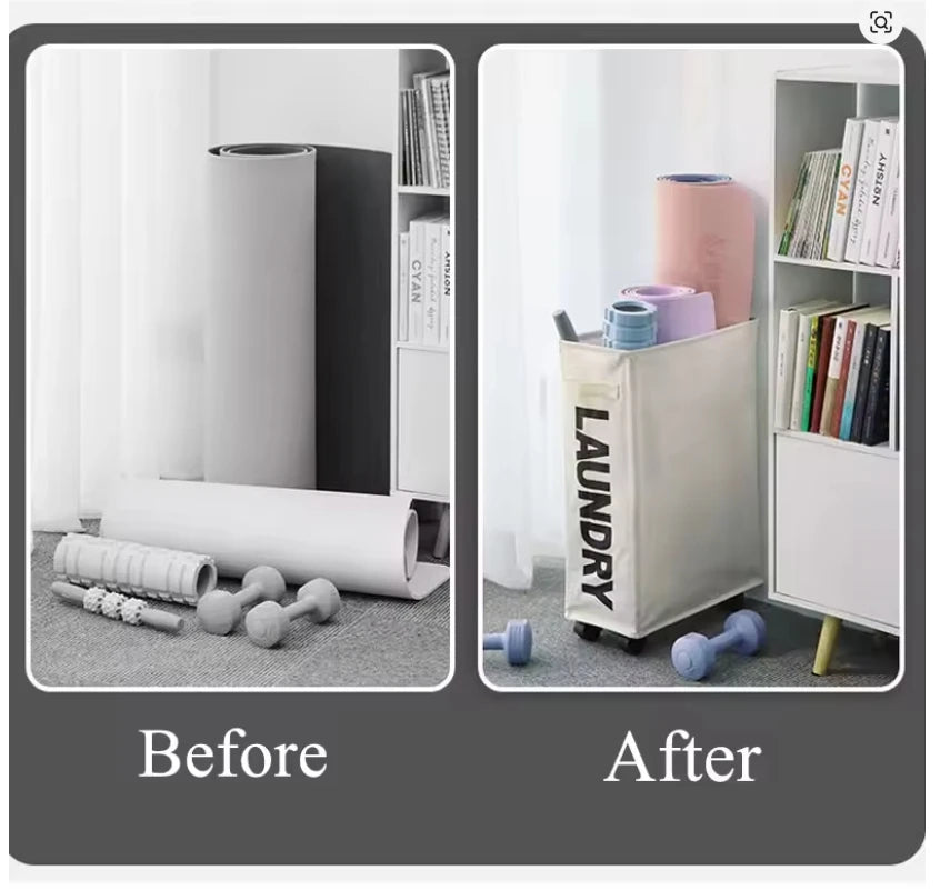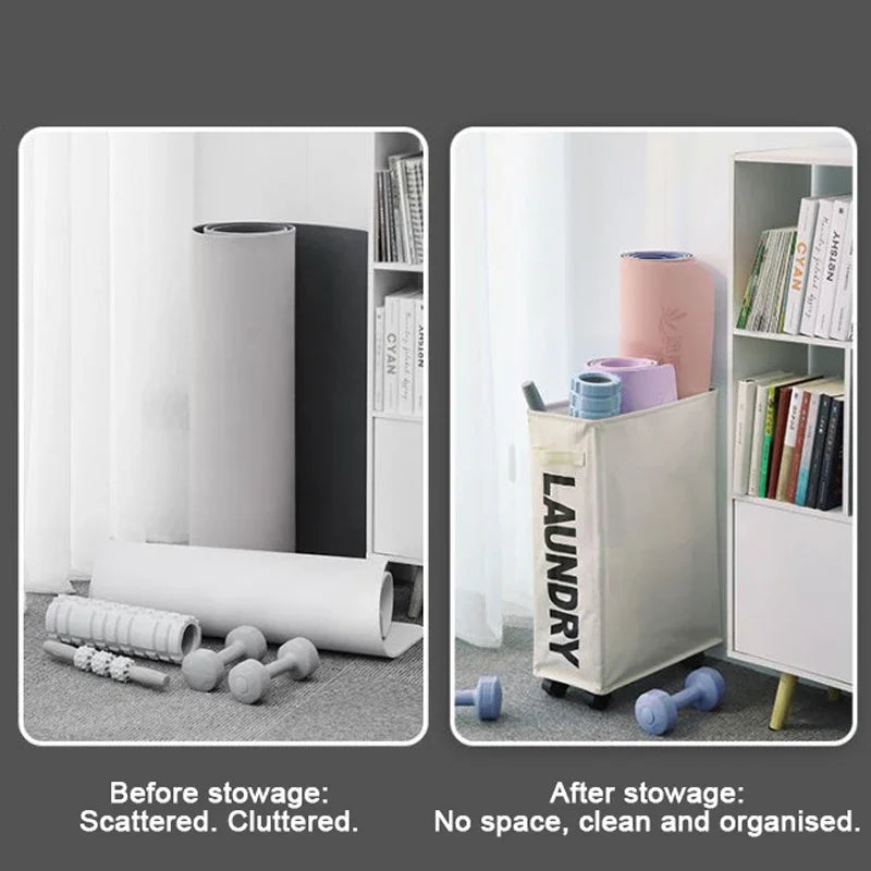Foldable Laundry Basket with Wheels - Multi-Purpose Storage for Clothes, Yoga Gear & Bathroom Accessories
