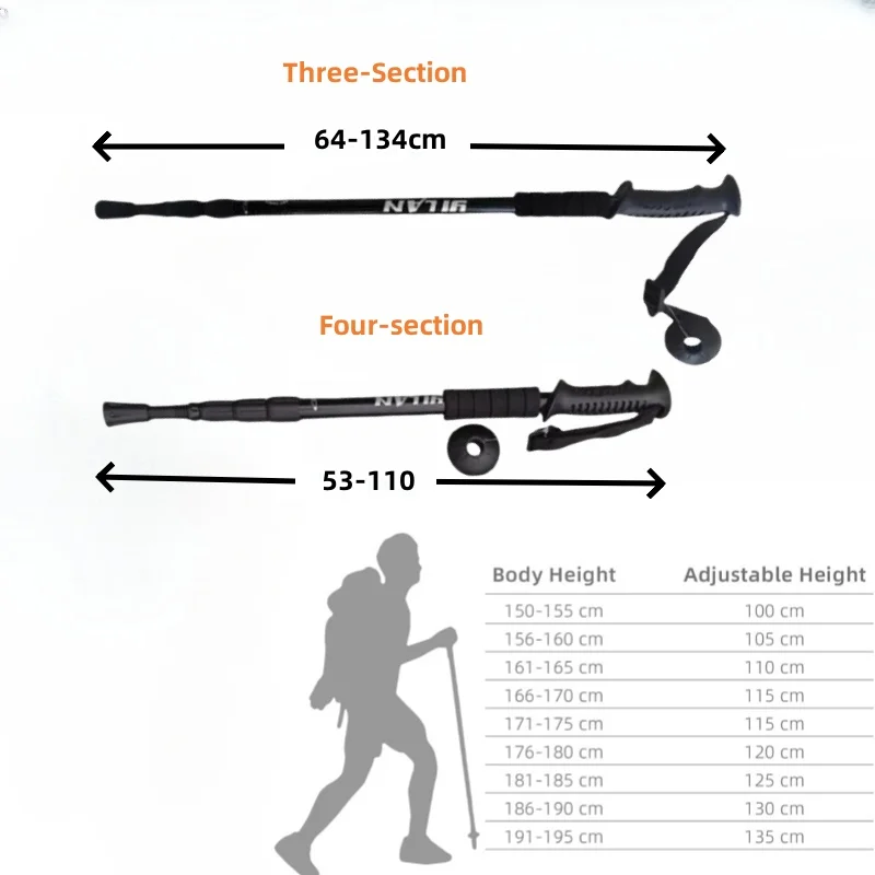 - Telescopic Adjustability: Quick-lock system adjusts from 53-110cm (3-section) or 64-134cm (4-section)