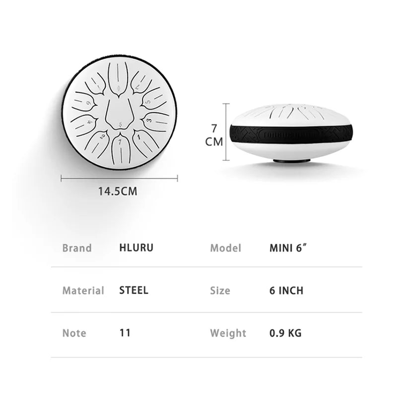 HLURU Glucophone Steel Tongue Drum 6 Inch 11 Notes D Tone Ethereal Drum Music Drum Yoga Meditation Percussion instrument