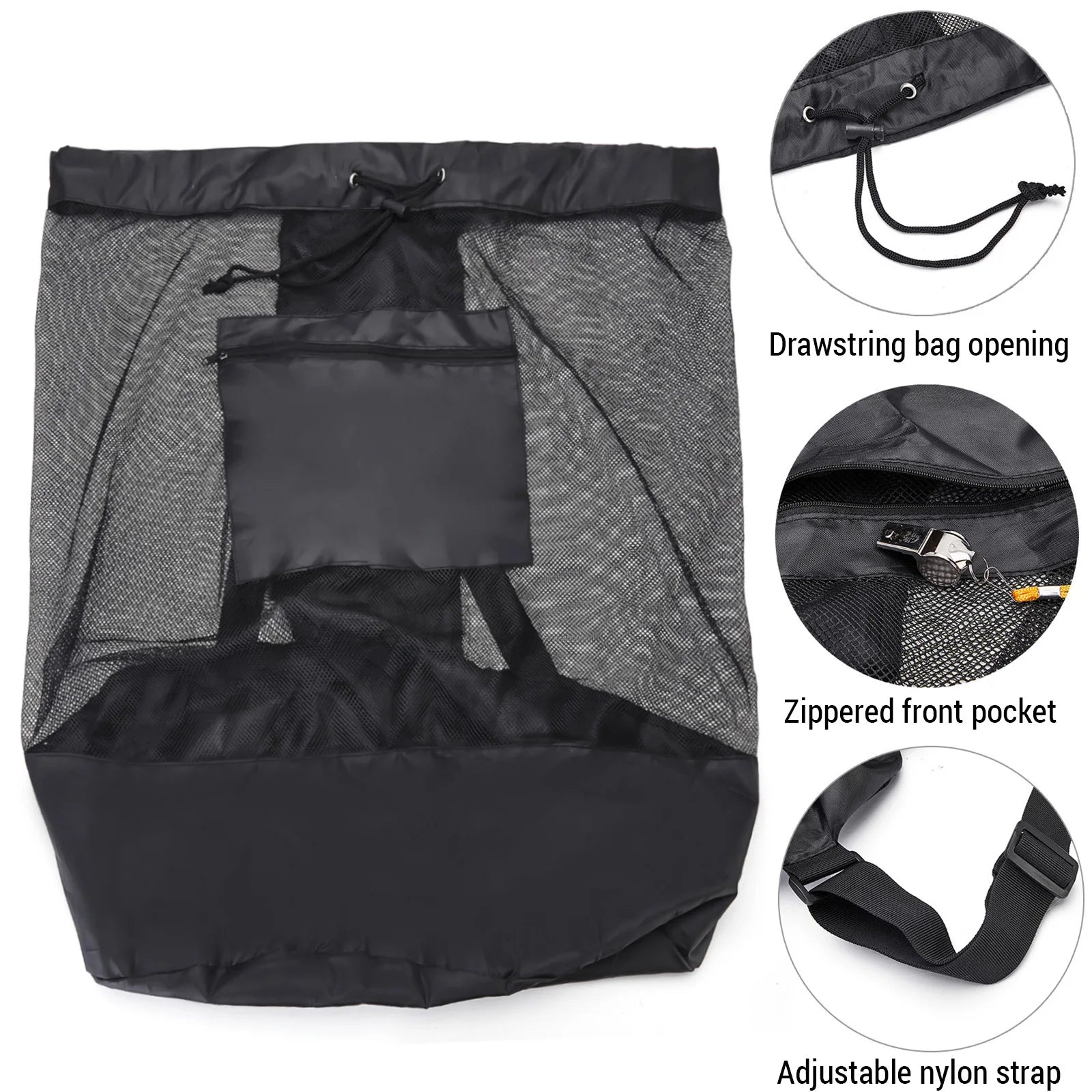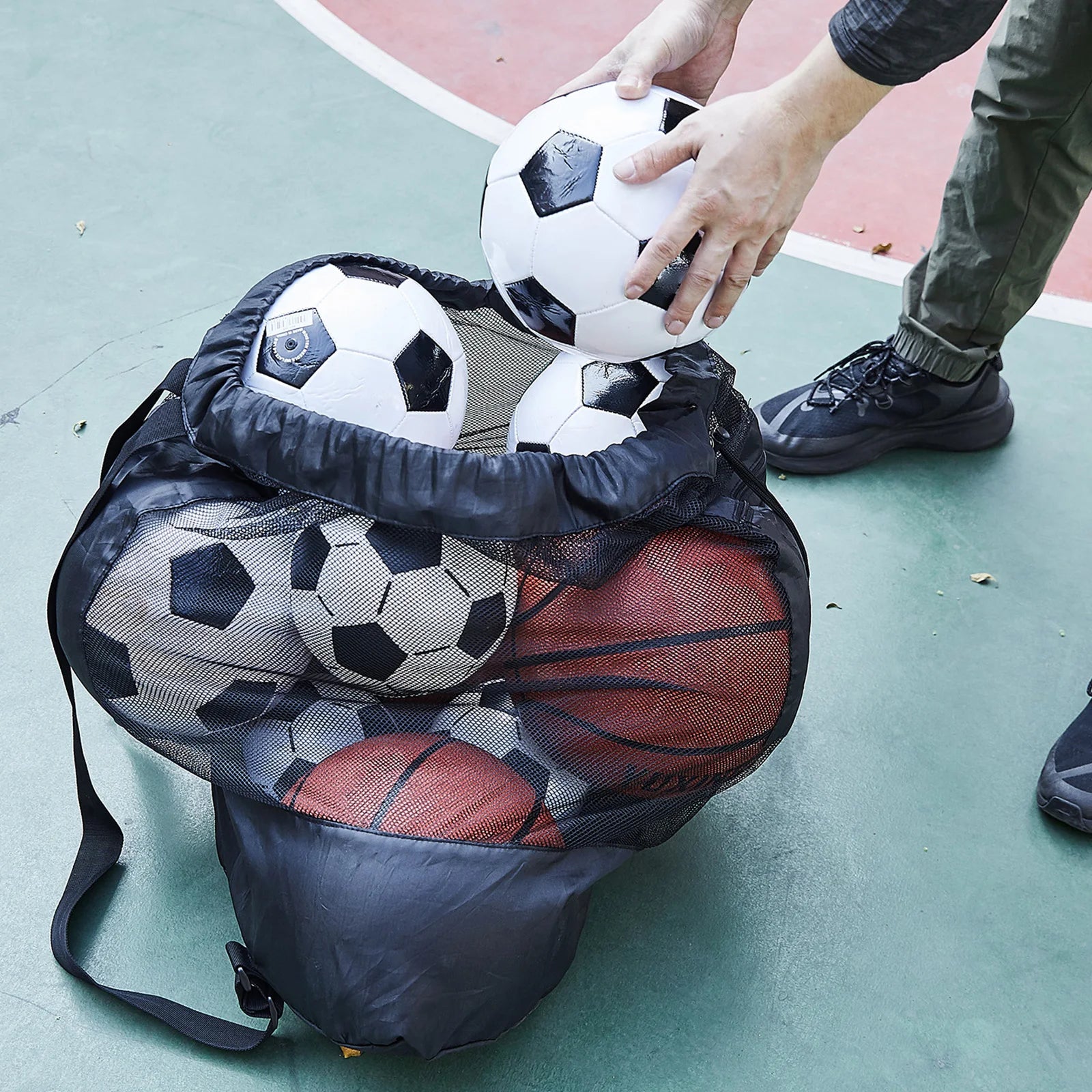 This large capacity ball storage bag features a drawstring design, making it easy to tighten and prevent items from falling out. It's perfect for storing and carrying basketballs, footballs, and other types of balls.