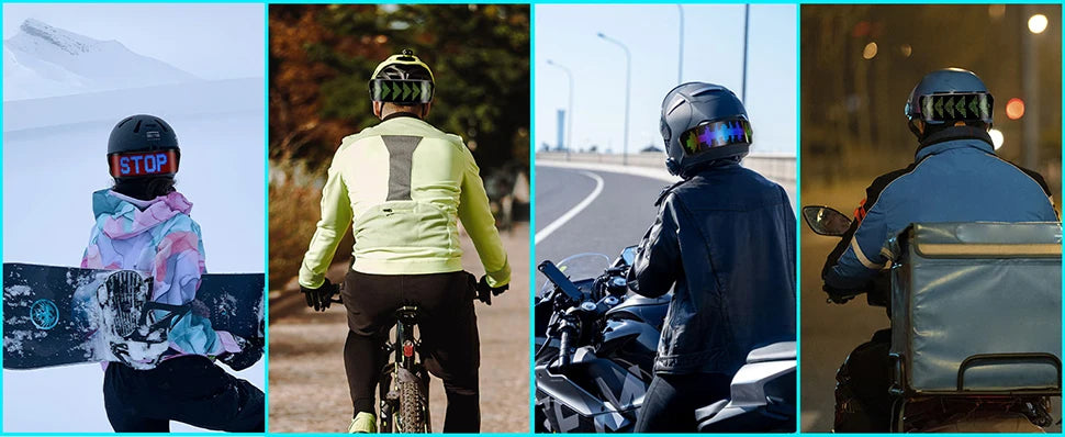 Express your personality with customizable colors and dynamic patterns. Whether you're cruising on your motorcycle, electric scooter, or bicycle, this versatile display adapts to most helmet curvatures and matches your unique riding style. Stand out from the crowd while staying safe.