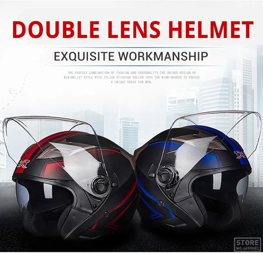 Half Face Motorcycle Helmet - Double Lens, Four Season, Unisex Street Fashion Safety Helmet