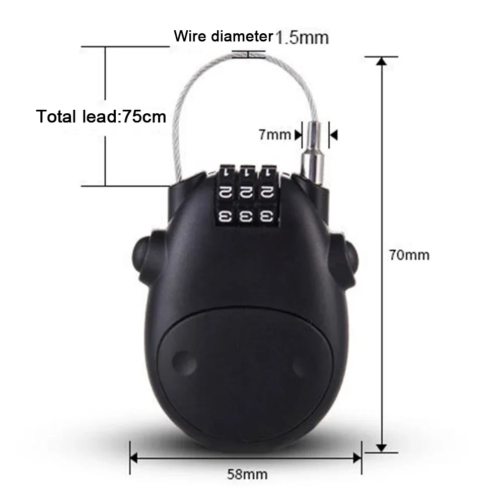 - Retractable Design: Cable switch allows quick extension and retraction—lock stays compact when not in use.