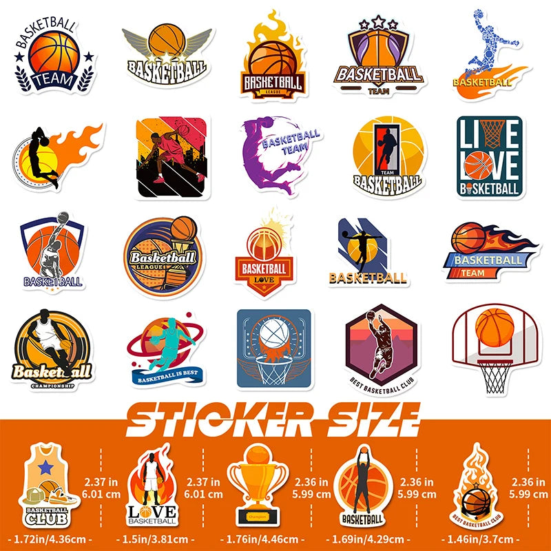 Newly 50PCS Trendy cool motivational sport slam dunk cartoon basketball sticker