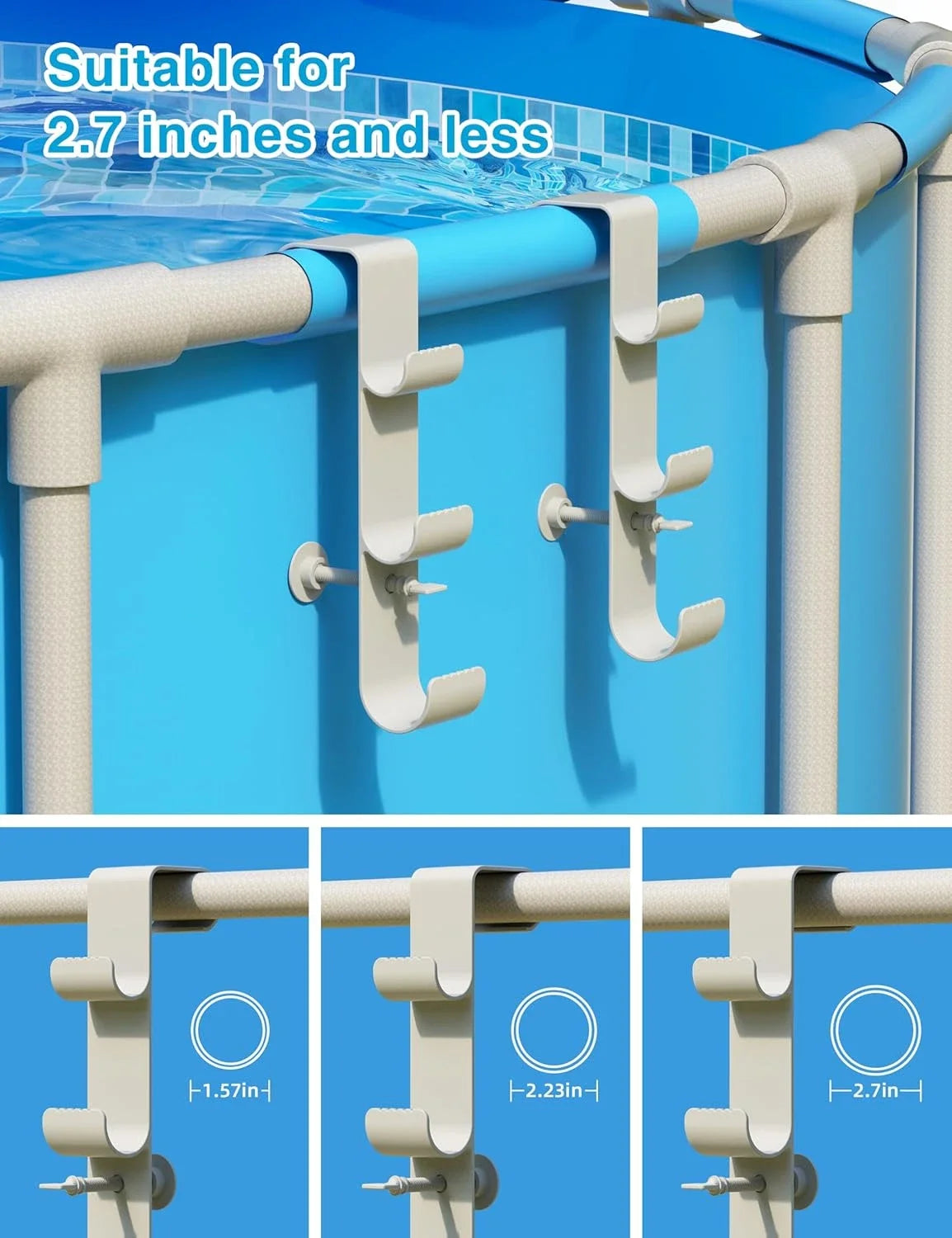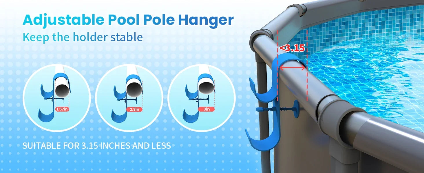 Adjustable Pool Pole Hooks - 2/3-Hook Swimming Pool Equipment Hanger for Telescopic Skimmer Poles and Pool Accessories