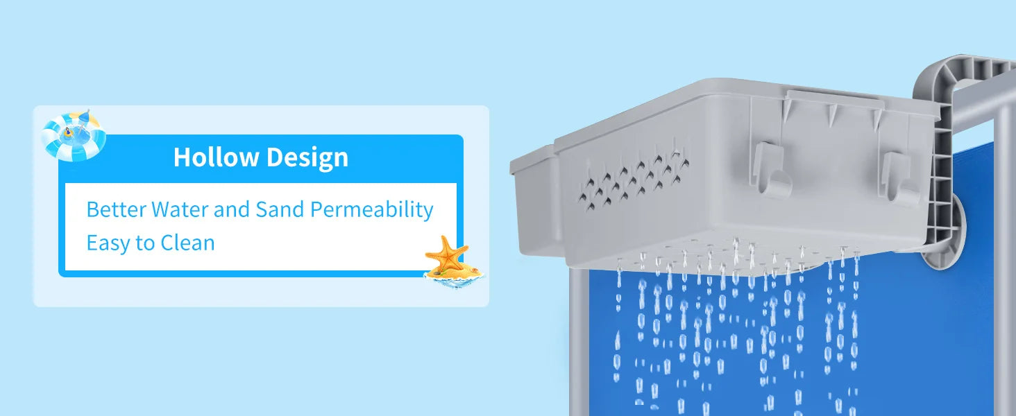 Built for athletes who demand reliability! The innovative grip system securely attaches to your pool wall, while the adjustable support bar prevents damage and ensures perfect balance. Smart drainage design keeps your gear dry and ready for action. No more scattered equipment - everything stays organized and accessible during your aquatic training sessions.