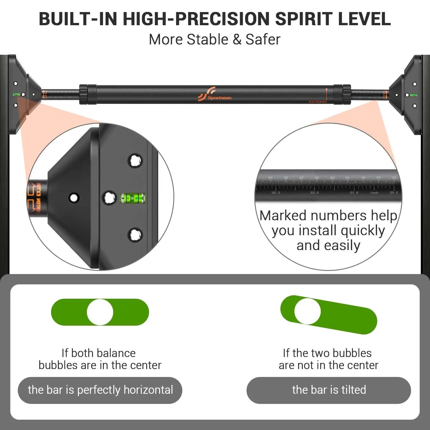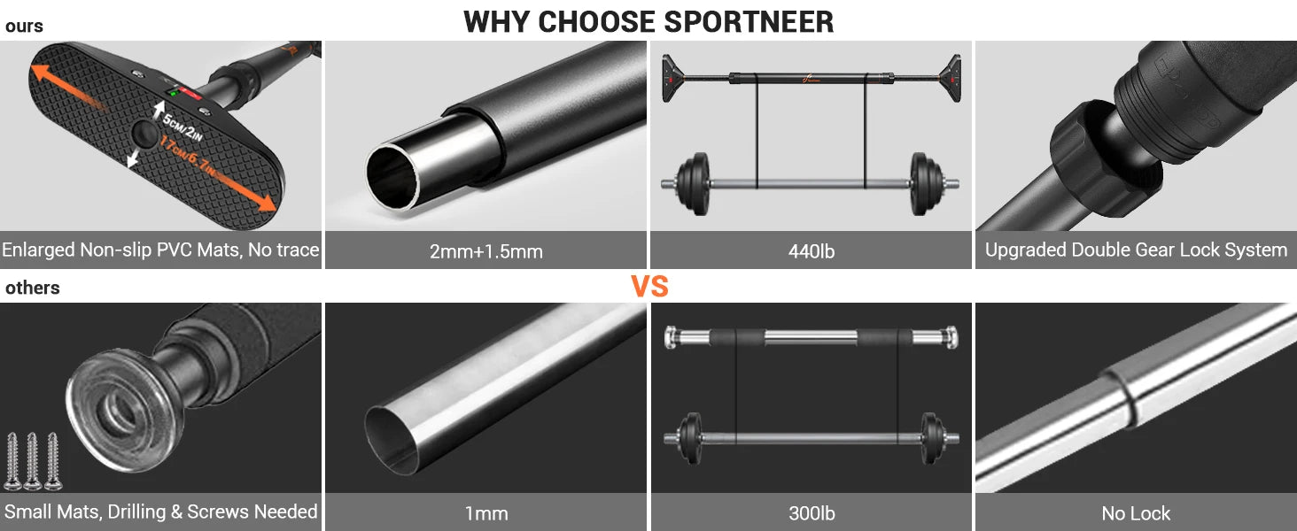 Indoor Home Pull Up Bar Adjustable Width Strength Training Chin up Bar without Screws Max 440lbs for Fitness Exercise