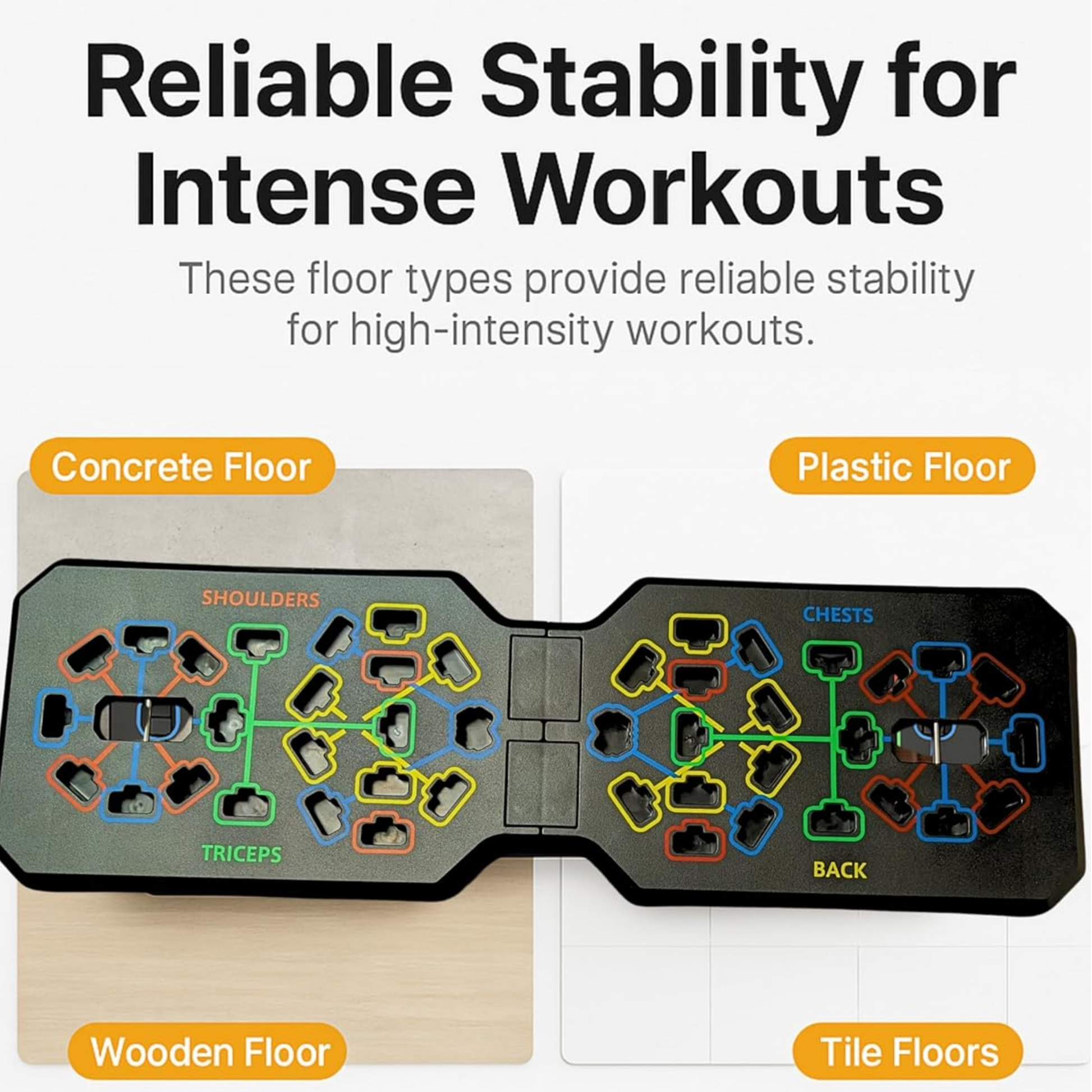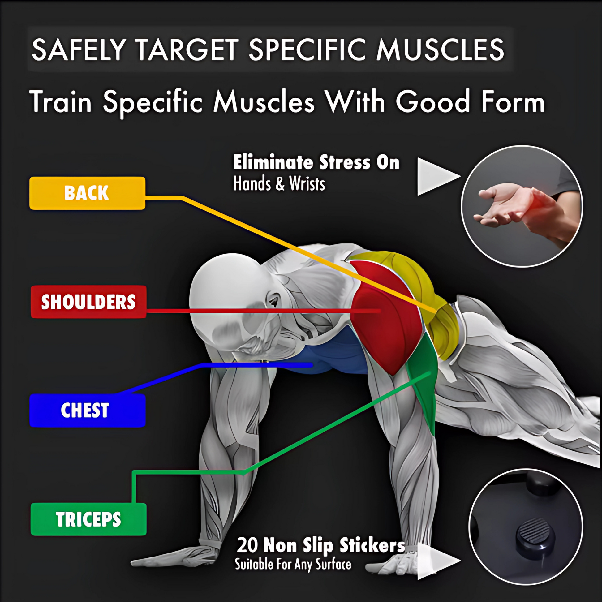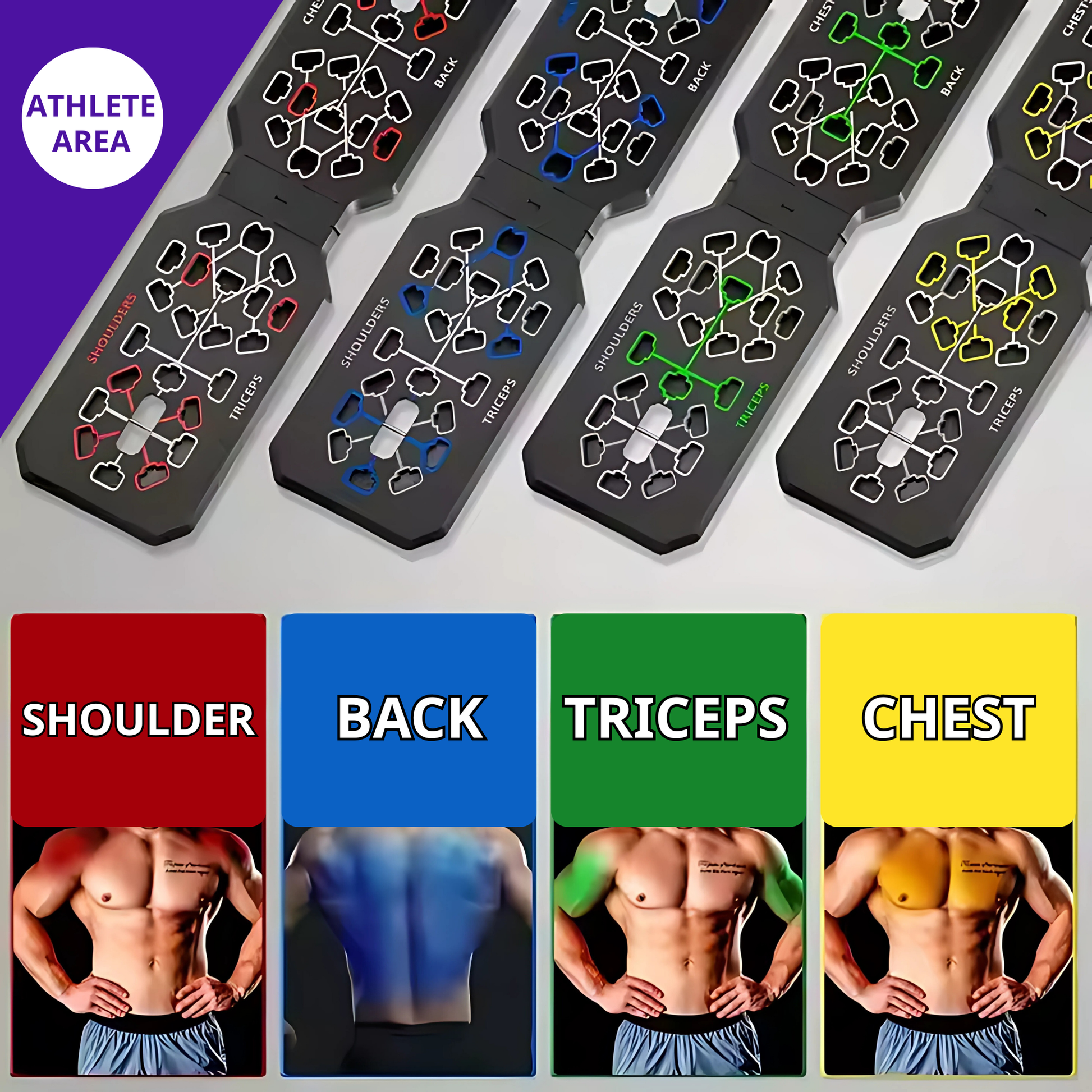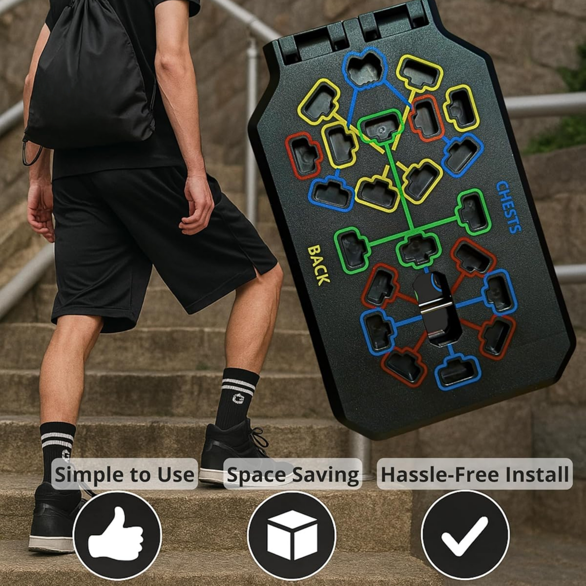 - ✅ All-in-One Workout System – Color-coded push-up board targets chest, back, shoulders, and triceps for efficient muscle training.