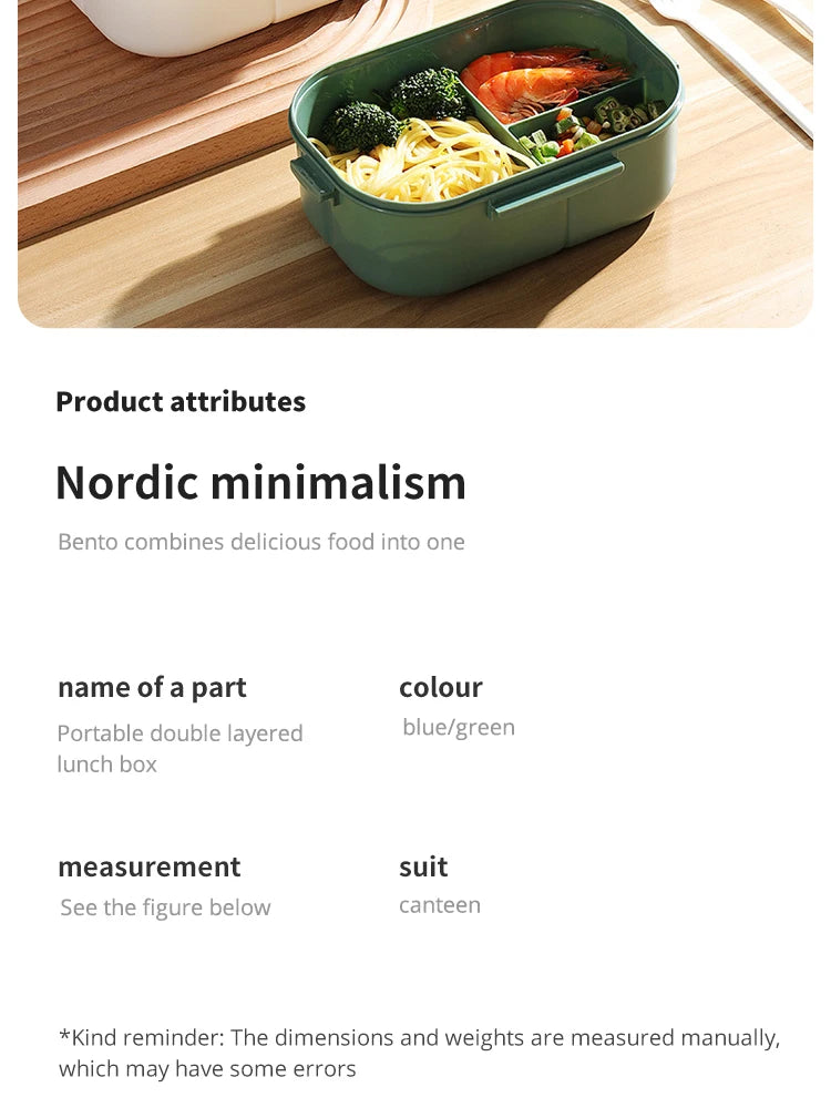 Portable Double-Layer Lunch Box with Compartments - Microwave Safe Food Container with Fork & Spoon Set for Picnic and Fresh Food Storage