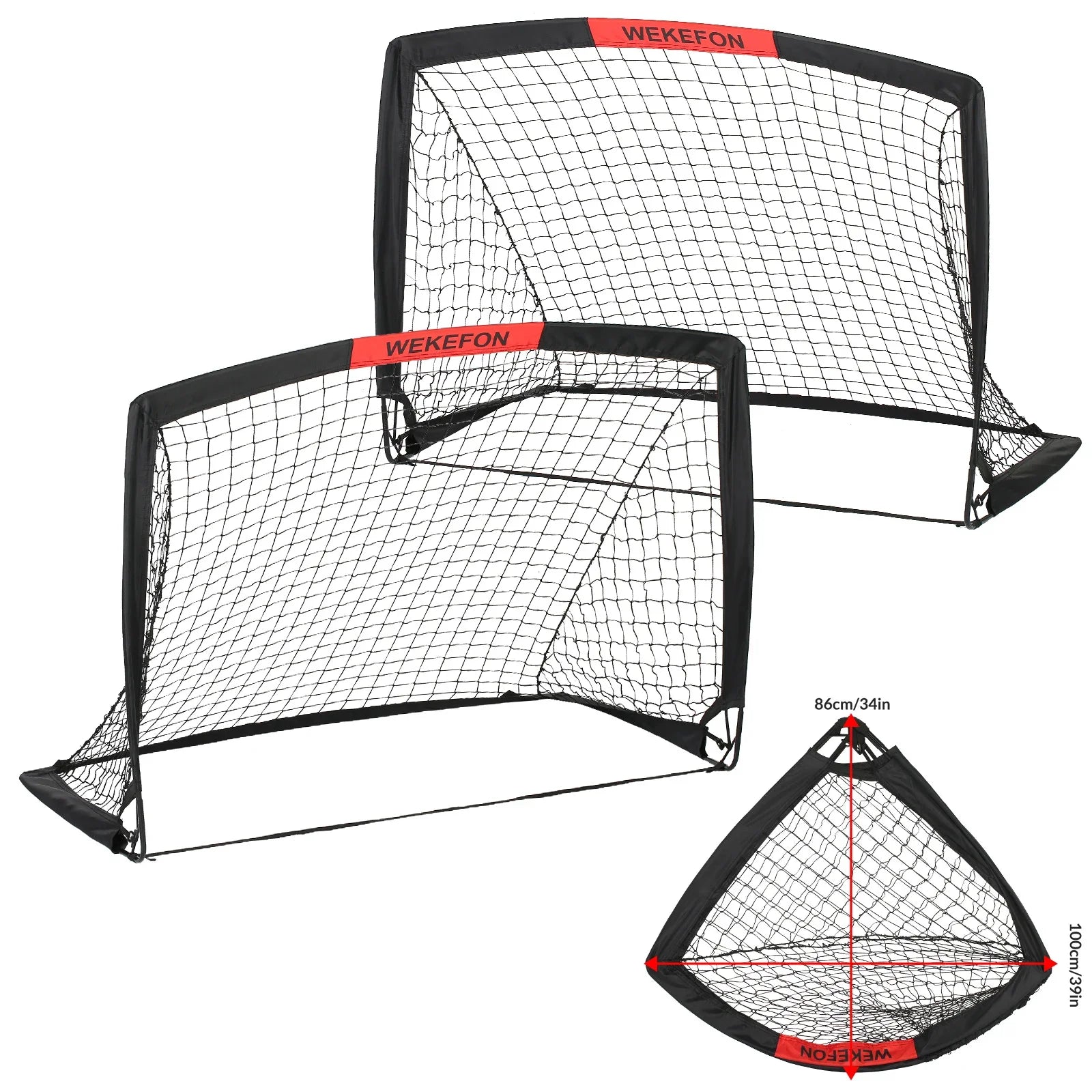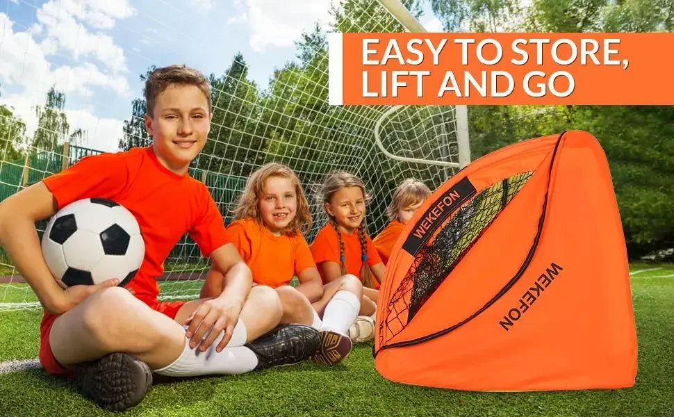 【Portable Soccer Goals Set & Saving Space】 Foldable soccer goals Set of 2, Unfolded Size:3.6FT x2.7FT x2.7FT, Folded size: 3.3FT*2.7FT , Collapsible and lightweight set of soccer goal perfect for spontaneous kids soccer games or practice anywhere. Come with carry bag, Just strap it over your shoulder and take to play no matter indoor or outdoor. Take the kids soccer goal to the park, beach, your backyard or your next family get-together!