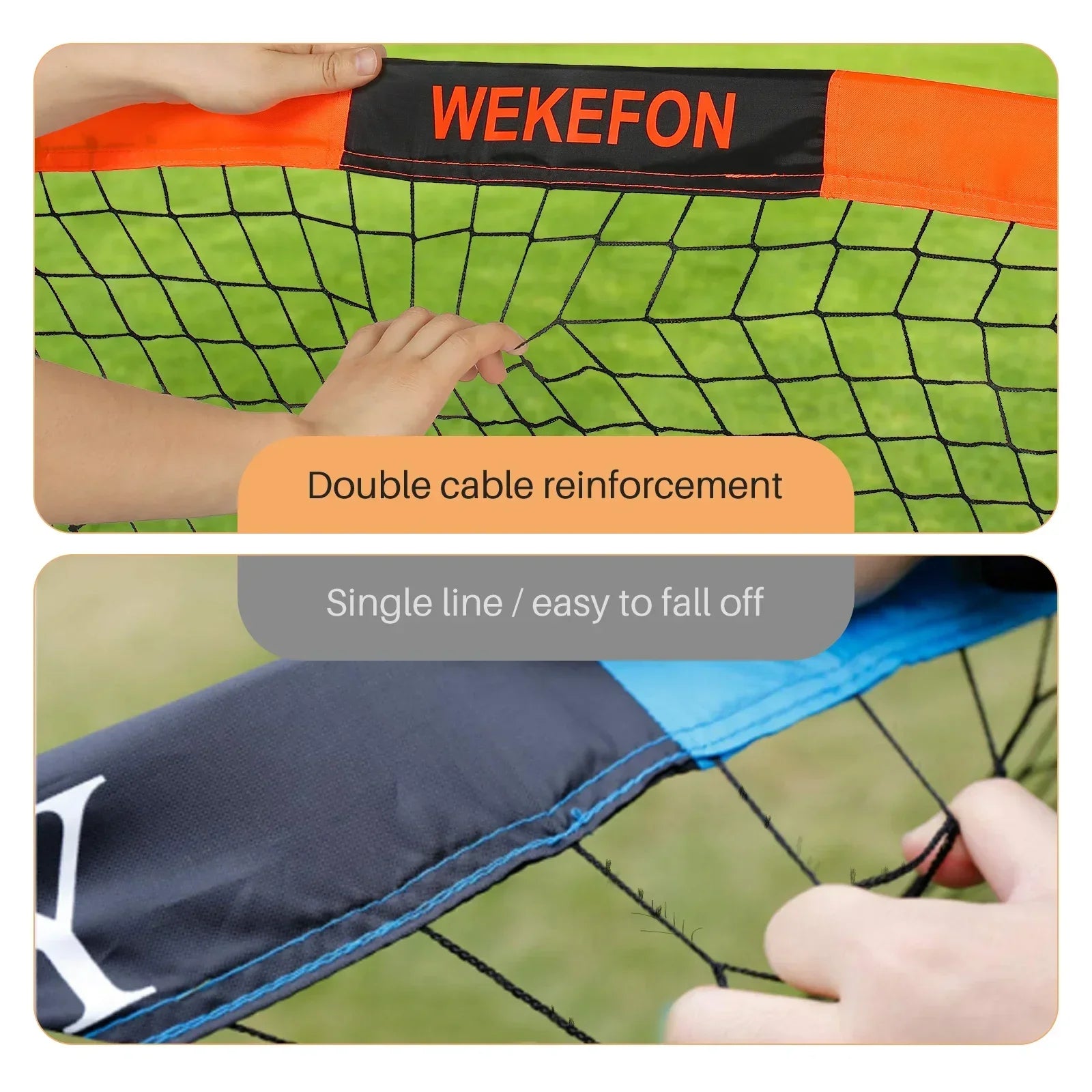 【Durable Polyester Soccer Nets & Reinforced Fiberglass Poles】 Our soccer net even after experiencing large amounts of strong shoots it will still stay firm, the three strands of polyester nets and 450D Oxford fabric is perfectly durable and seamed to defence tearing. 9MM(other's:only 6MM) REINFORCED POLES Make sure the youth soccer goal doesn't break during the kick.
