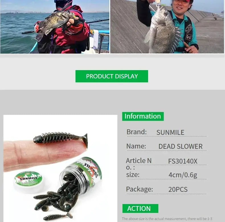 SUNMILE Artificial Soft Bait Fishing Worms - 4cm/0.6g - 20 Piece Set - Rock Fishing Wobblers for Perch, Trout & Bass