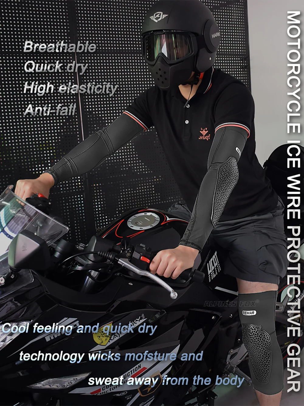 VEMAR Motorcycle Knee and Elbow Pads - Breathable Anti-Fall Protection Guards for Motocross, MTB, DH Cycling - High Elasticity Sleeves
