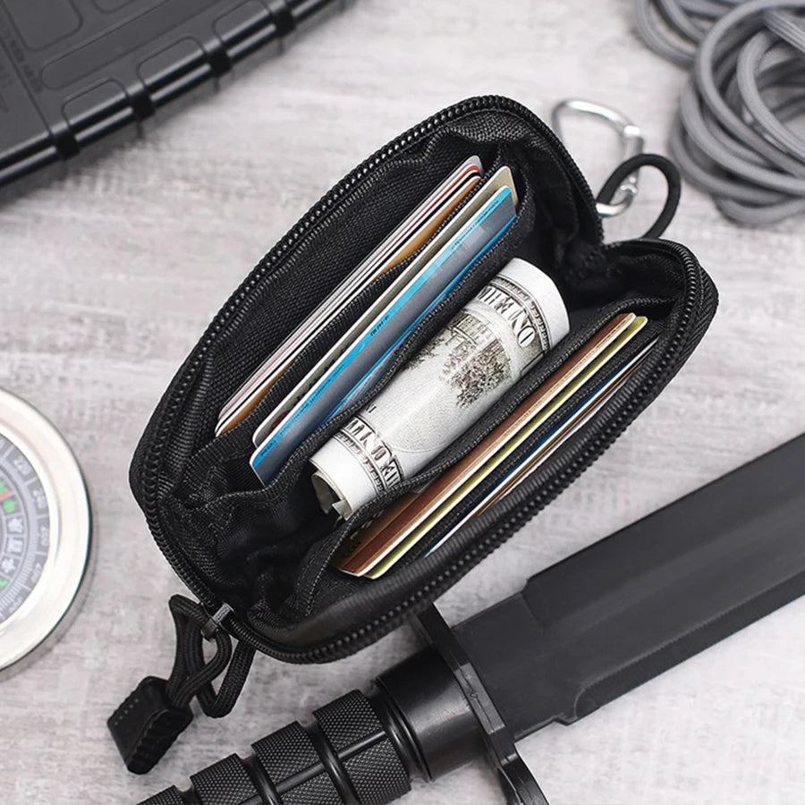 - Multi-Compartment Design - Dedicated slots for cards, coins, keys, and small gear
